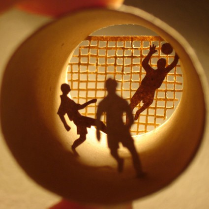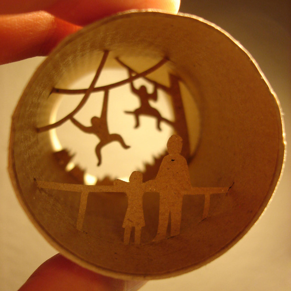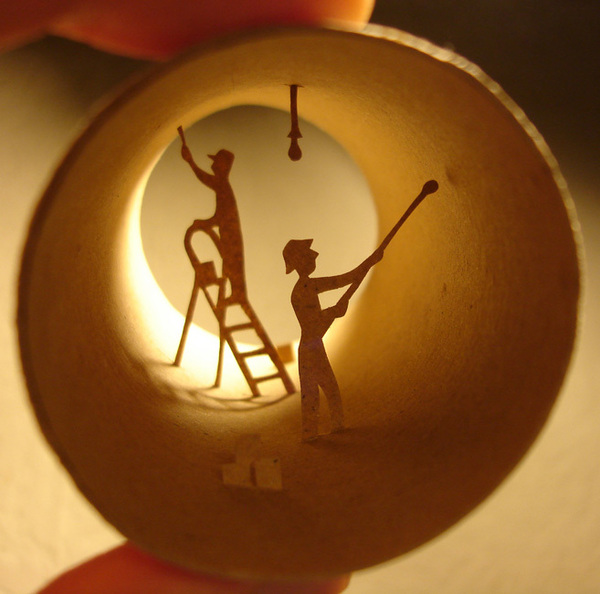 Voici un recyclage étonnant de rouleaux de papier toilette recyclés qui reconstitue diverses scènes. Tantôt une scène représenant un pêcheur, tantôt un joueur de foot marquant un but ou encore des ouvriers entrain de rafraichir un batiment.