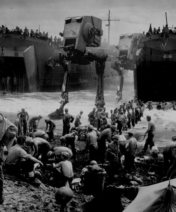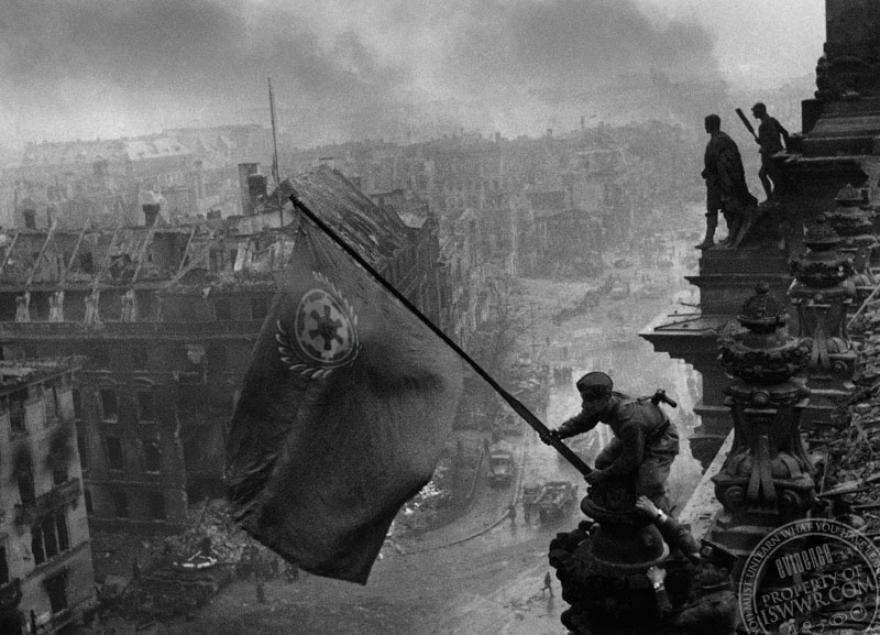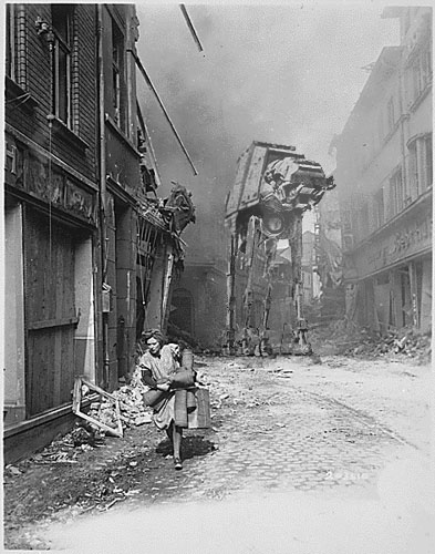 Après Star Wars sur Facebook, voici un nouveau détournement de la Saga avec cette fois une incursion de divers personnages sur des clichés datant de la seconde guerre mondiale. On y voit alors une unité médicale dans un groupe d’infirmiers, des unités AT-ST arrivant à la place de tanks, une unité R5 qui copilote un avion d’époque ou bien la lune transformée à l’occasion en Etoile de la Mort.
