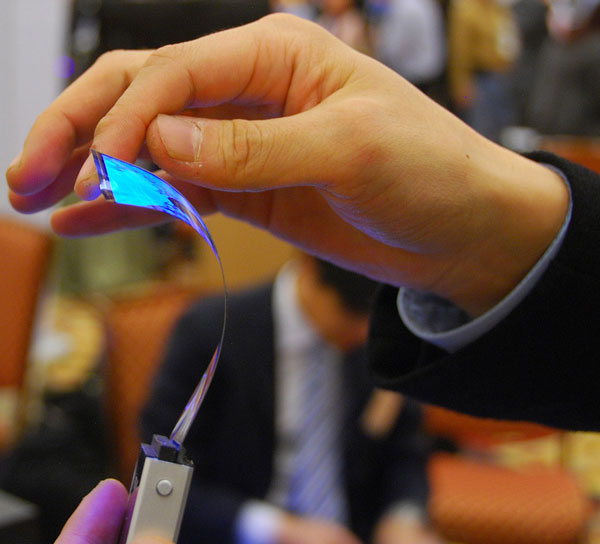 A l’occasion du CES qui s’est déroulé à Las Vegas, Samsung en a profité pour montrer ses prototypes d’écrans AMOLED. Les écrans AMOLED sont des écrans qui ont la possibilité d’être très fins et surtout, très maléables. De ce fait, on peut imaginer ce type d’écran sur à peu près tout ce qu’on veut, comme par exemple un écran d’ordinateur intégré sur un bracelet comme l’avait imaginé Sony pour 2020.