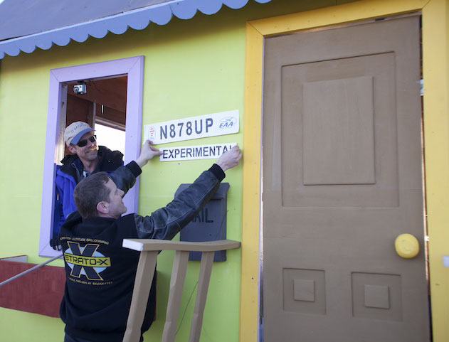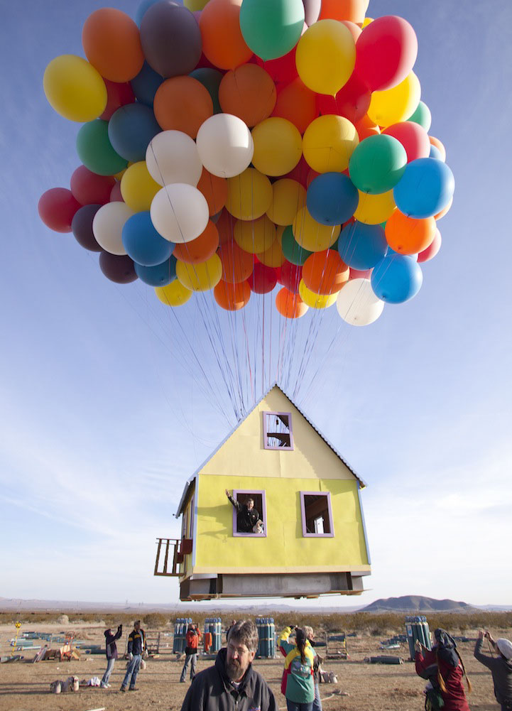 Concept développé par National Geographic avec une reconstitution de la maison du film Up (Là Haut) des studios Pixar. Une maison qui s’est vu offrir la possibilité de voler réellement avec toute une série de 300 ballons gonflés à l’hélium. Un lancement d’une maison grandeur nature effectué depuis un terrain à Los Angeles (Californie).