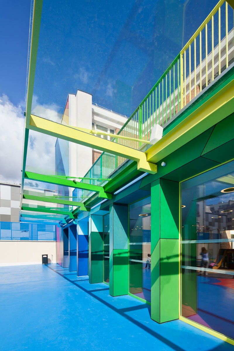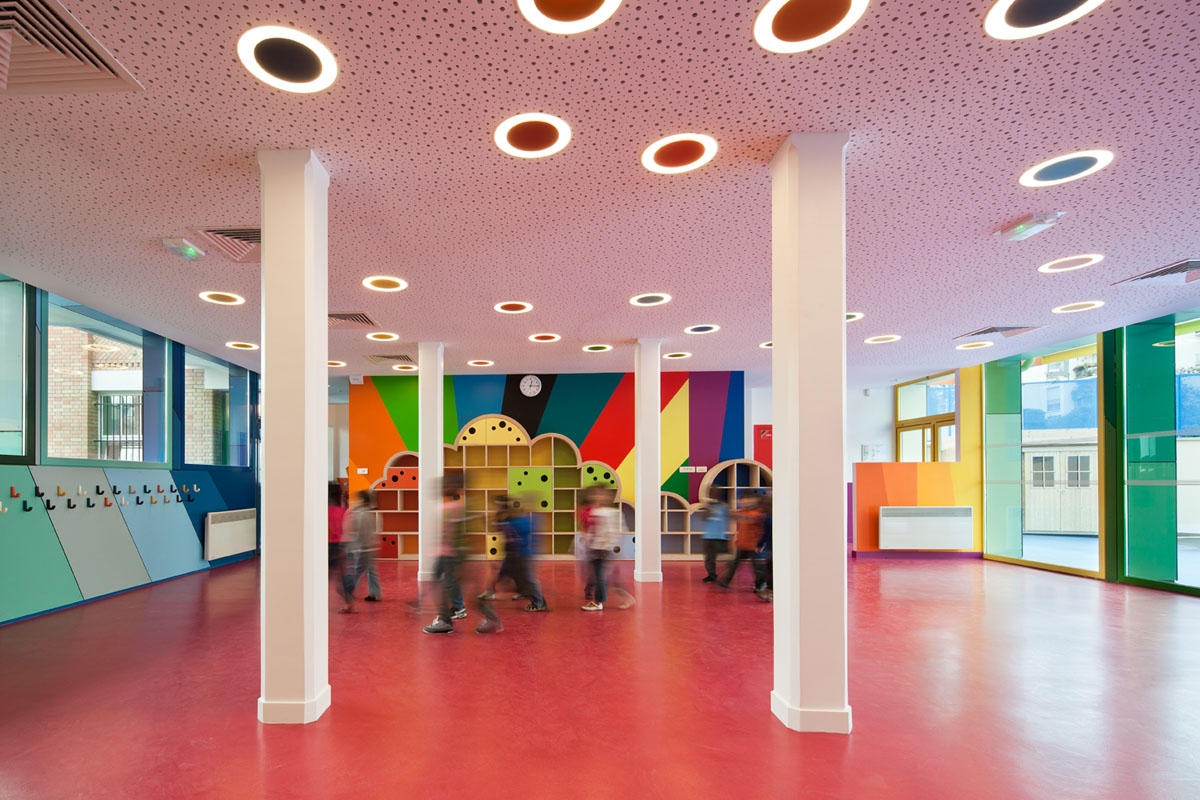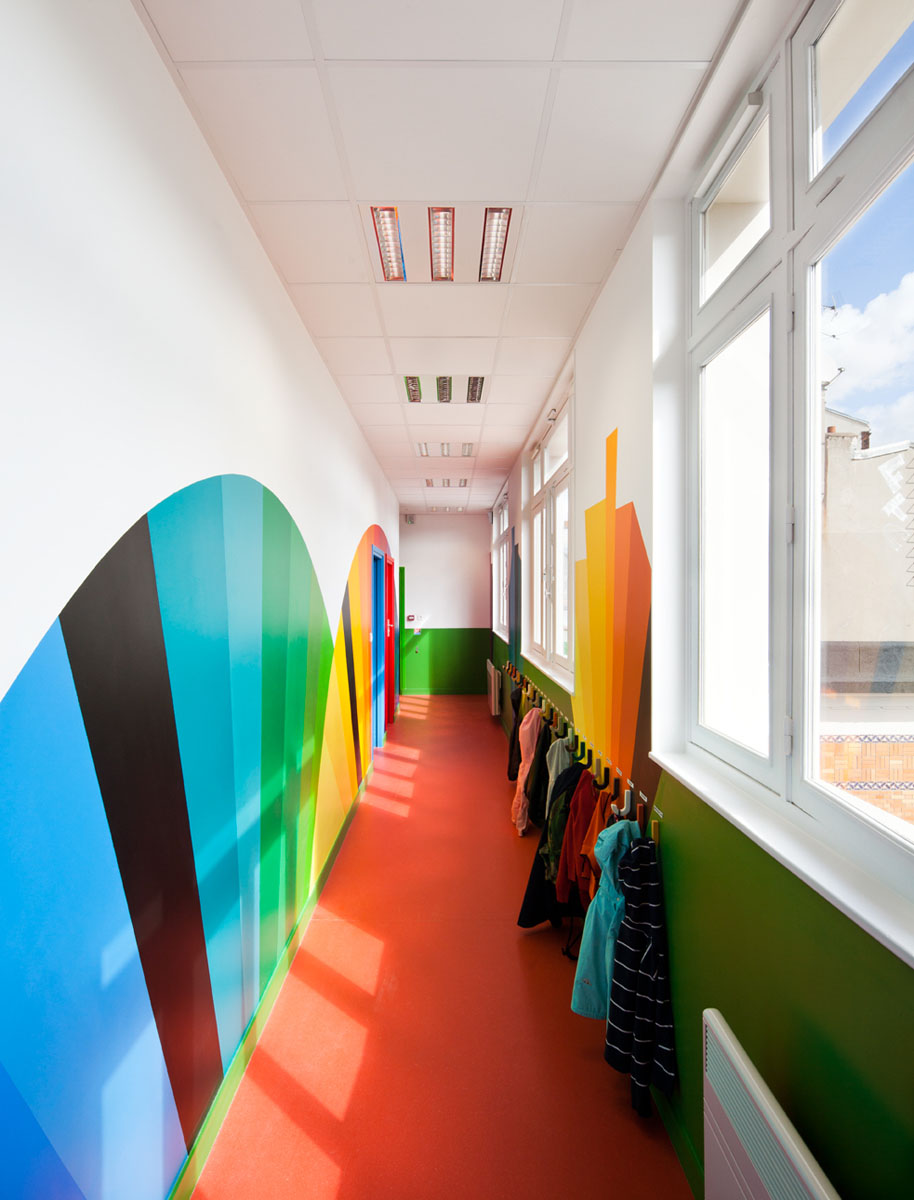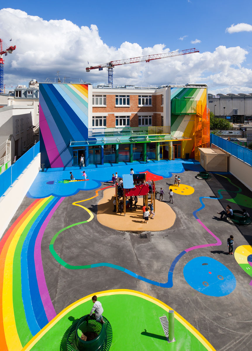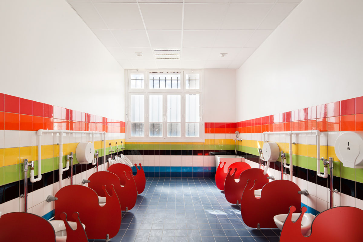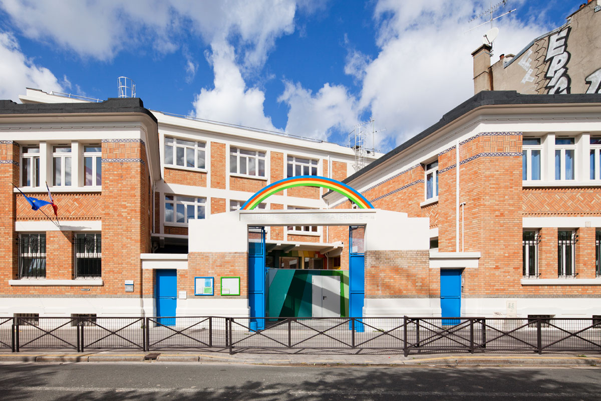 L’école maternelle Pajol est une école située dans le 18ème arrondissement à Paris. Il s’agit d’un batiment datant des années 40 remis à neuf par le cabinet d’architectes Palatre et Leclere. Ce projet a été pensé de manière à garder la structure identique à son historique, tout en ajoutant un côté coloré. L’intérieur lui a été complètement refait à neuf sur le même concept très coloré. De quoi ajouté de la lumière et de la bonne humeur aux jeunes bambins dans un environnement cartoon-esque.