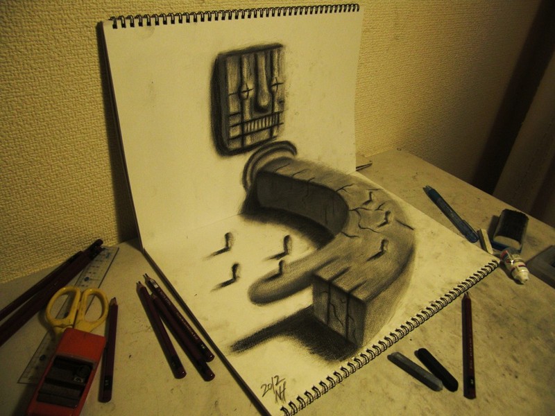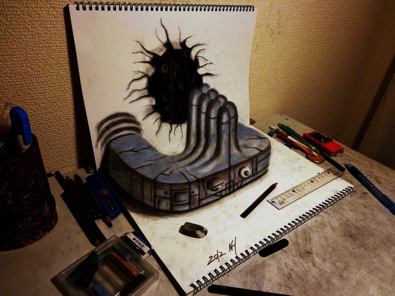 Nagai Hideyuki aka Hide, est un jeu artiste japonais âgé d’à peine 21 ans et pourtant, il possède déjà un talent énorme en dessin. La preuve en est, ces quelques rendus 3D où Nagai Hideyuki utilise le procédé de l’anamorphose pour créer un effet d’optique. Le résultat est vraiment impressionnant et à découvrir.