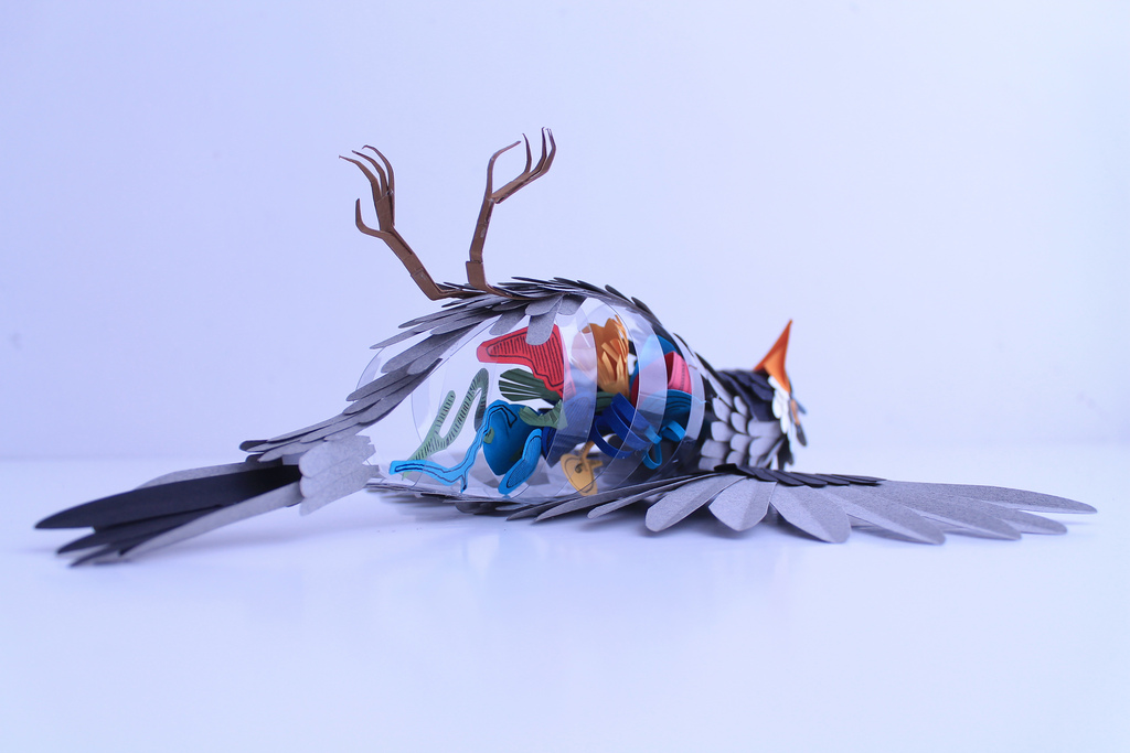 Depuis tout à l’heure, je suis entrain de découvrir le monde des animaux faits de papier réalisés par l’artiste colombienne Diana Beltran Herrera. Ses seuls outils sont du papier, du papier-collant ainsi que ses mains. Ses réalisations sont tout simplement sublimes et réalisées avec un niveau de détail élevée. Non contente de réaliser régulièrement de nouveaux animaux, Diana Beltran Herrera a littéralement disséqué des oiseaux récemment. Pour en voir plus, il y a ses différents sets sur Flickr, les oiseaux ou les animaux sauvages.