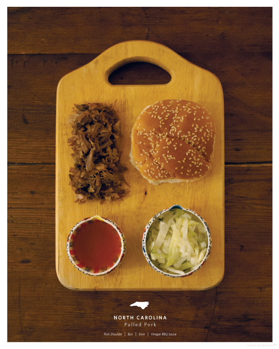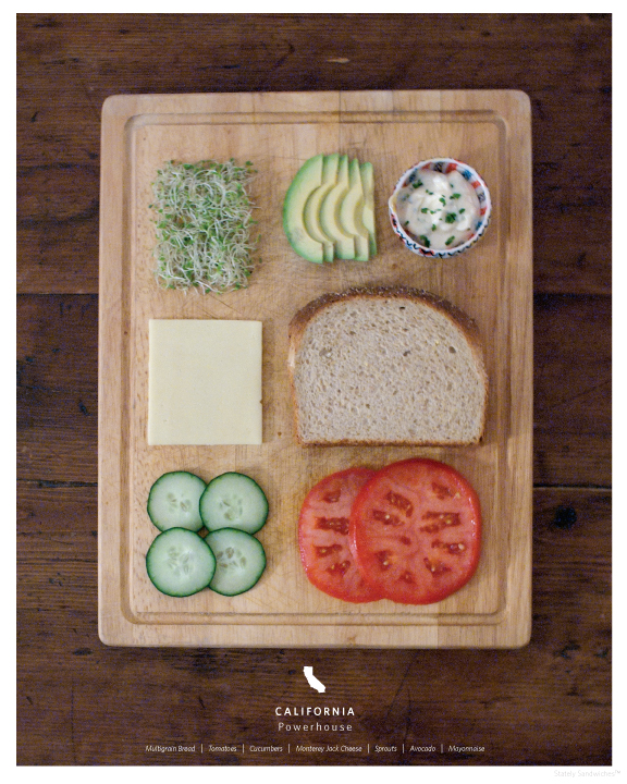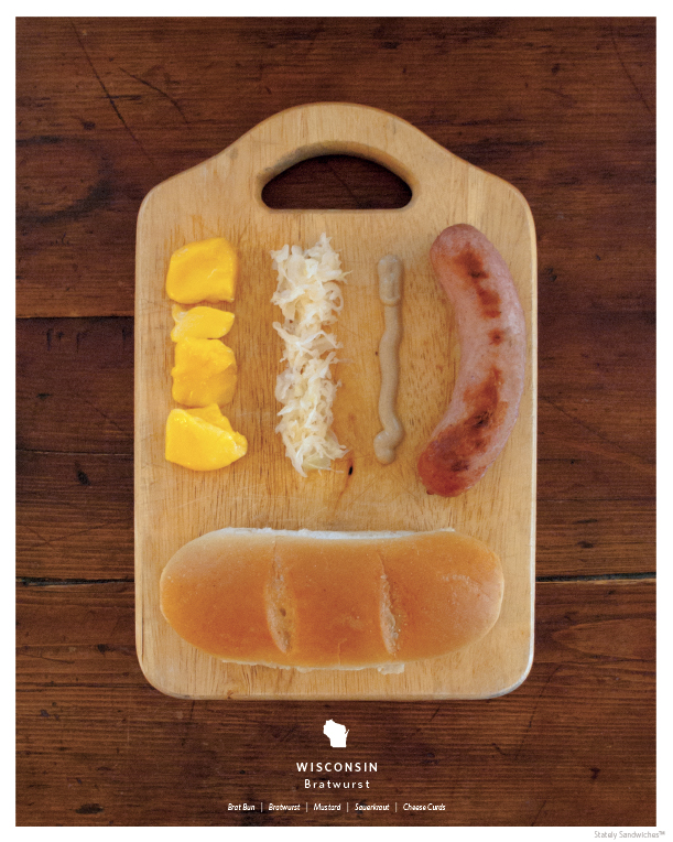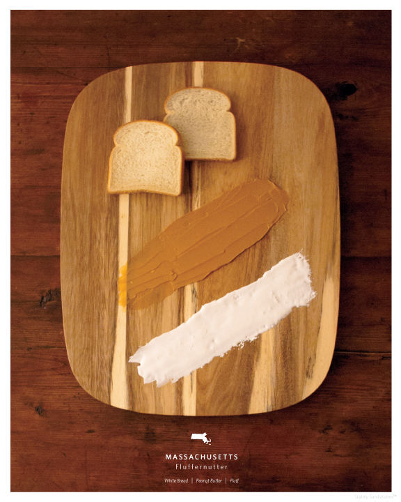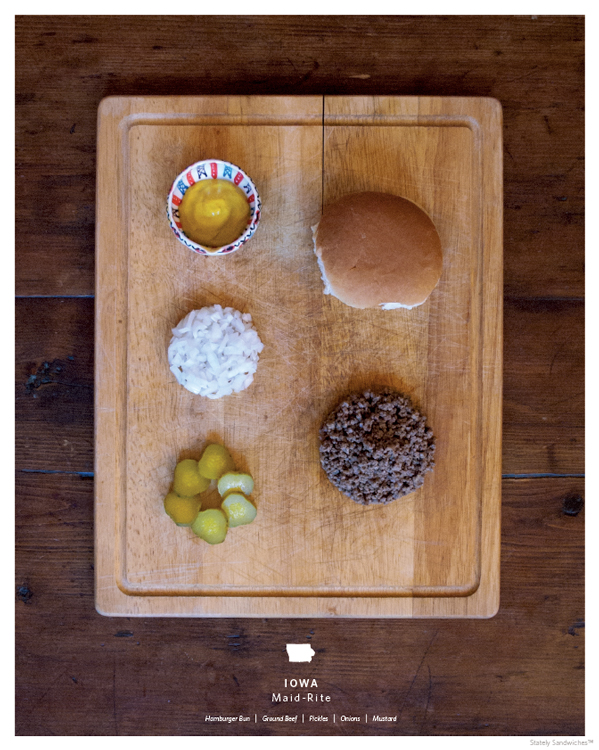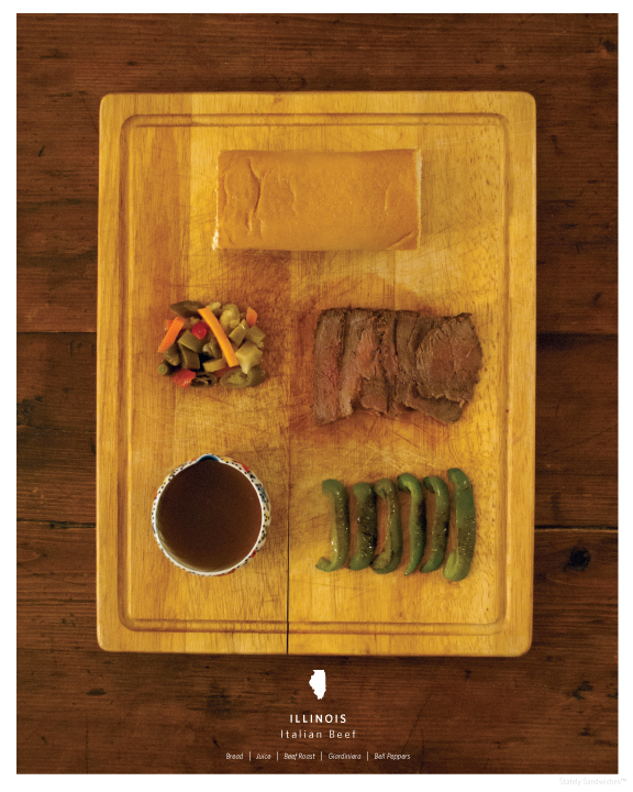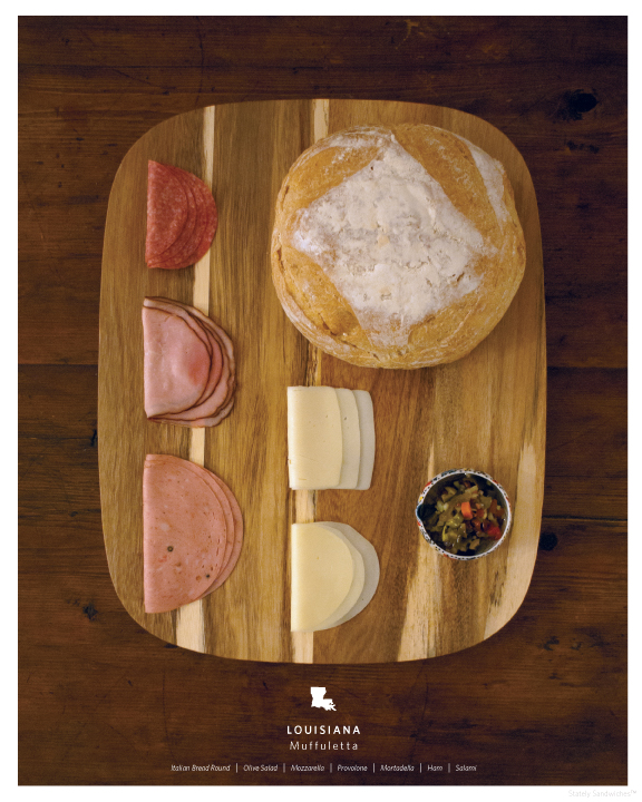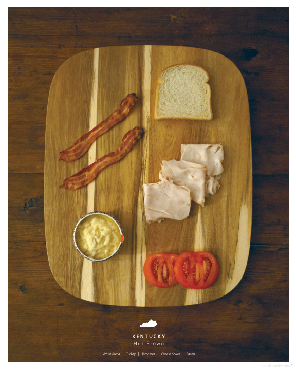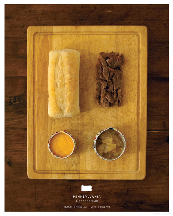 Kelly Pratt est une directrice artistique et designeuse aux Etats-Unis. Elle met en avant un concept appétissant et original baptisé « Stately Sandwiches ». On retrouve une spécialité de sandwich de chaque état du pays de l’oncle Sam. L’idée intéressante consiste à disposer chaque ingrédient composant la recette sur une planche en bois. Bon appétit !