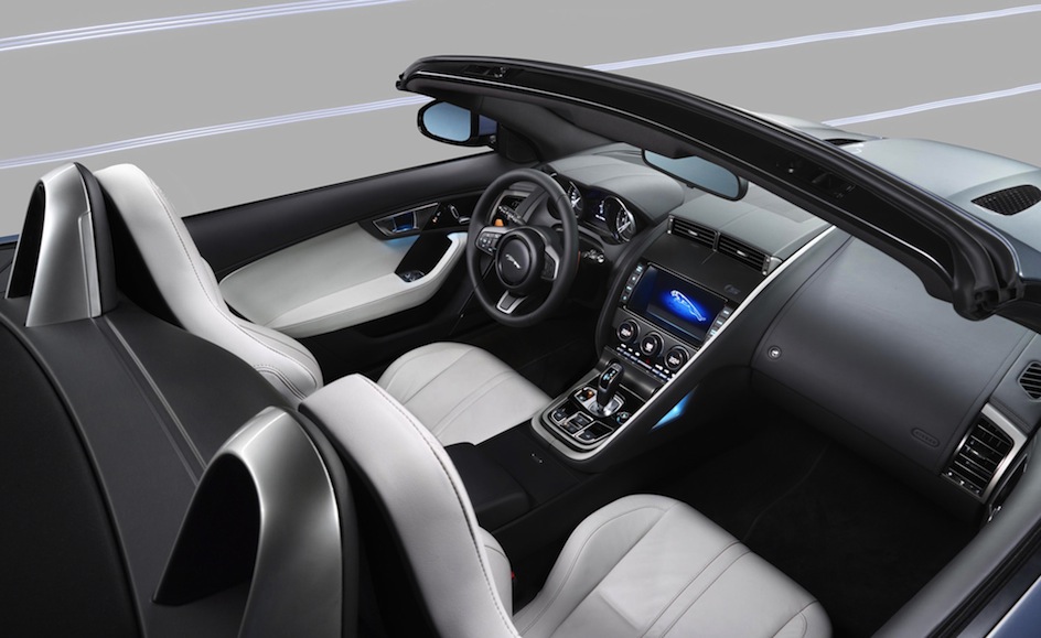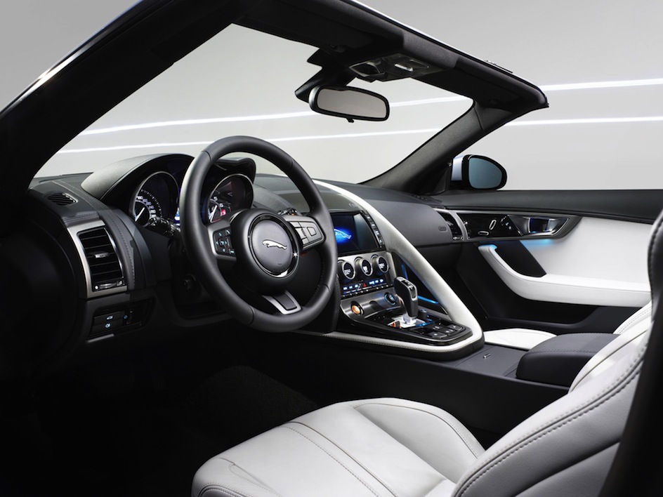 Dévoilée au Mondial de Paris, la Jaguar F-Type se veut dans la lignée des mythiques XK 120 et autres Type E. Ce roadster 2 places dans la plus pure tradition maison avec son moteur placé à l’avant et la propulsion arrière est propulsée par un V6 de 3,0 litres développant 340 chevaux pour une accélération de 0 à 100 km/h en 5,3 secondes. Du côté vitesse de pointe, la belle affiche au compteur 260 km/h. La version S développe quant à elle 380 chevaux avec un V6 de 3,0 litres également pour une accélération de 0 à 100 km/h en 4,9 secondes. Une troisième version équipée d’un V8 de 5,0 litres développant 495 chevaux pour une accélération en 4,3 secondes et une vitesse de pointe de 300 km/h. Les trois motorisations sont associées à une boite « Quickshift » à huit rapports.