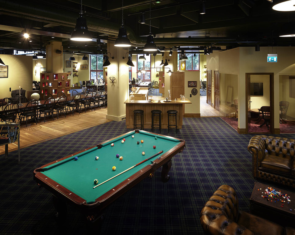 Voici un des plus beaux bureaux en Suède, en tout cas il a été nominé pour recevoir ce prix dans le pays Scandinave. Les bureaux de Mojang sont en tout cas des bureaux où il fait bon de vivre. Exit le minimalisme, c’est le bien-être des employés qui a été le centre de l’élaboration de ces bureaux, où on retrouve planchers en bois, sièges en cuir, tapis à carreaux et meubles en bois. L’éclairage est assez intime suivant les parties abordées pour une ambiance tout somme chaleureuse et quelque peu fifty. Les bureaux des employés sont localisés au côté des fenêtres tandis que les salles de pause sont tout simplement sublimes. Réalisés par BSK Architects.