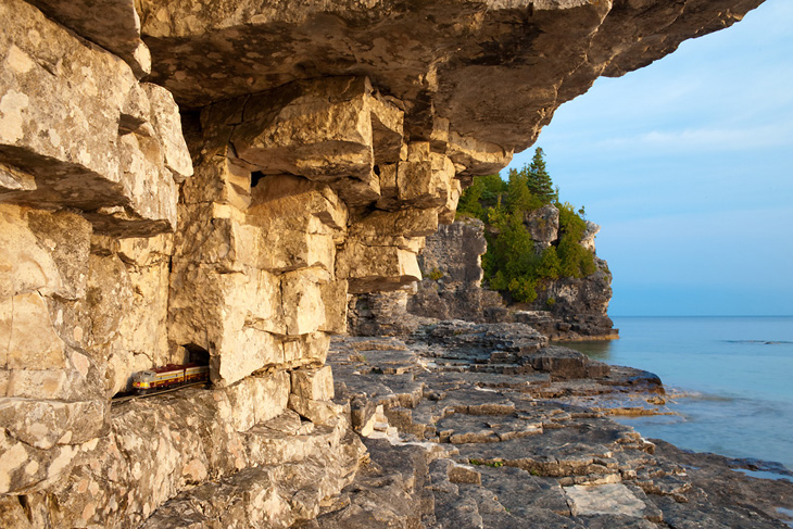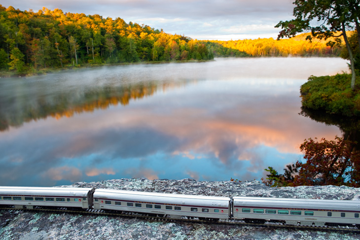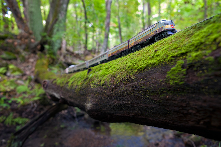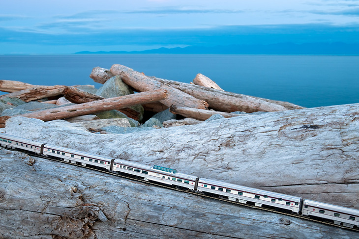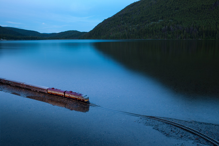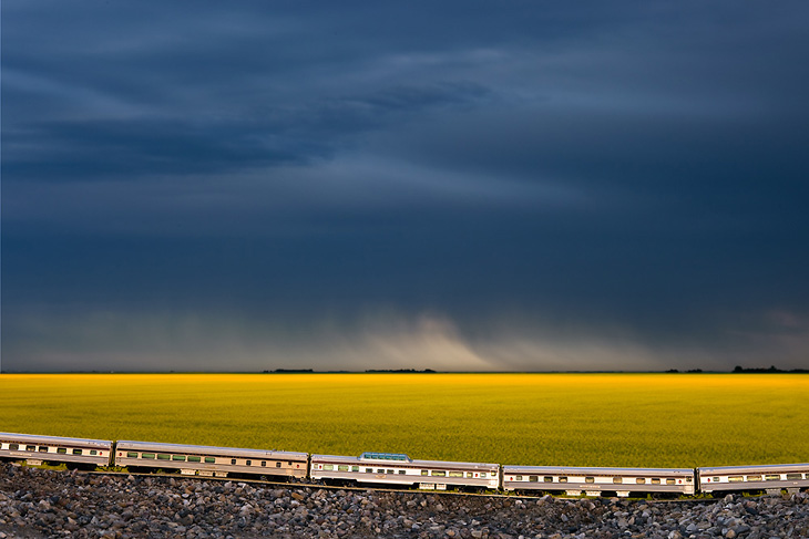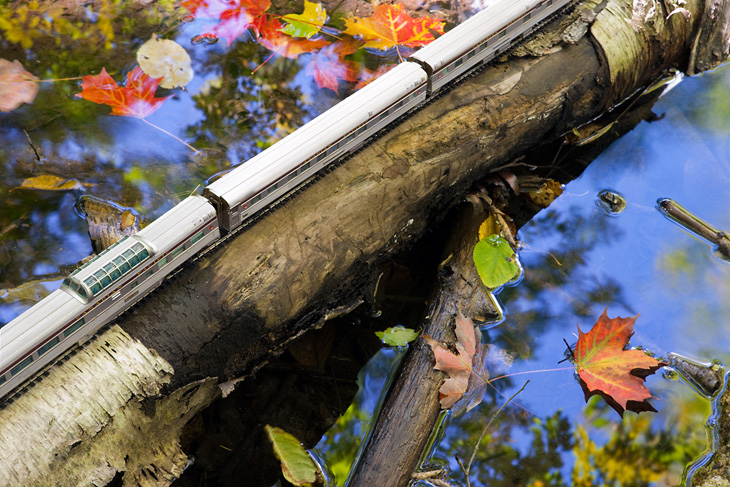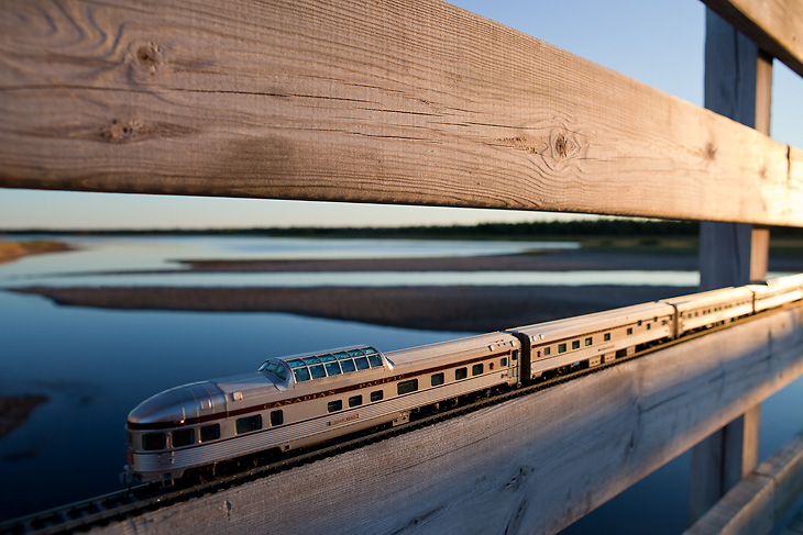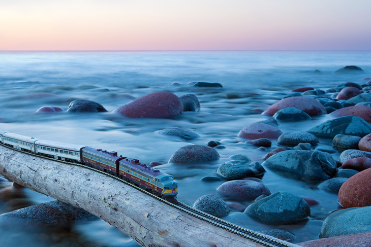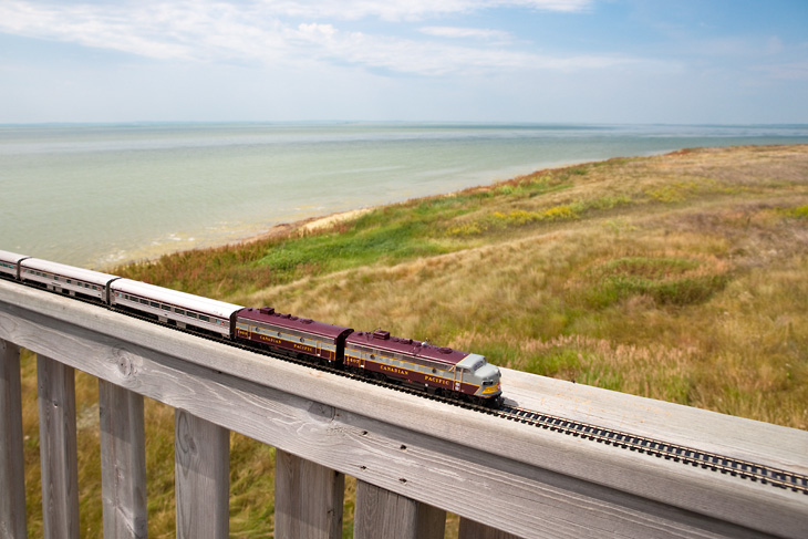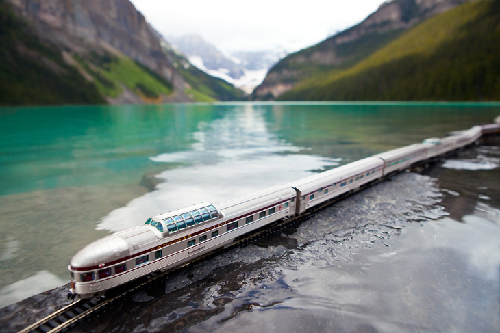 « The Canadian : Ghost Train Crossing Canada » est un projet réalisé par le photographe canadien Jeff Friesen. Son but étant de voyager dans son pays natal, de bout en bout et d’y prendre quelques clichés des tellement différents paysages visibles dans ces contrées. Mais là où le projet de Jeff Friesen est intéressant, c’est qu’il a voyagé avec un train électrique dans son sac à dos. Au lieu de se contenter de photos de paysages classiques, il a agrémentés ses réalisations du « Canadian », un train de 1955 qui n’est plus en service aujourd’hui. Tout un symbole pour le photographe.