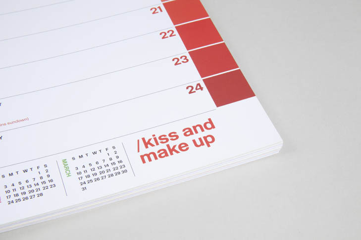 Pantone est une entreprise américaine. Mais si le nom de Pantone vous dit quelque chose, c’est principalement pour son nuancier, élaboré par la même société américaine, qui sert de référence couleur pour les imprimeurs. Afin de mettre de la couleur pour cette année qui commence, Pentagram propose un calendrier coloré pour 2013 en reprenant des gammes de couleurs. Pour cela, ils proposent soit un calendrier mural ou sous forme d’agenda qu’il est possible d’acheter pour un peu moins de 12€.