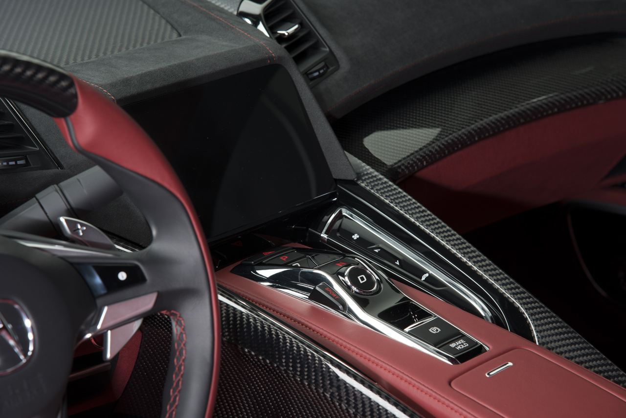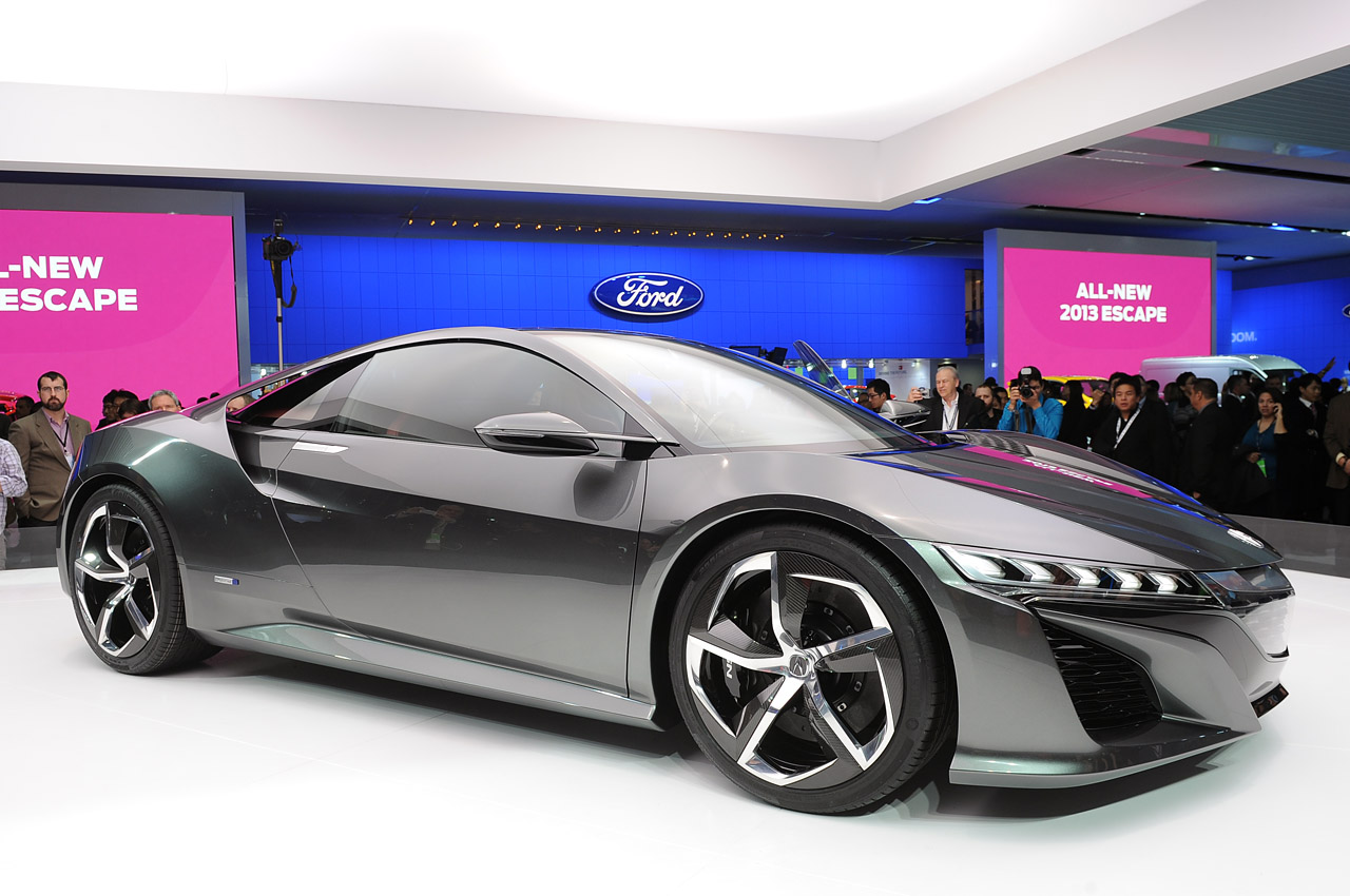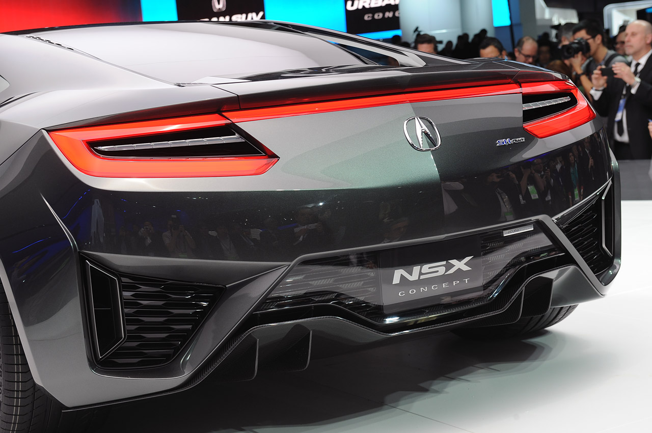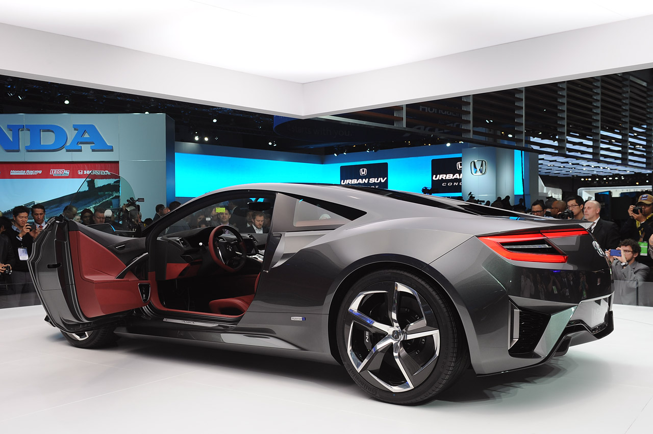 Retour sur ce concept de l’Acura NSX. Ce nouveau concept est la nouvelle version de cette voiture emblématique fabriquée par le constructeur nippon Honda qui a été largement écoulée aux USA et Japon. Un modèle initialement prévu pour concurrencer Ferrari et Porsche, mais sans véritable succès sur le vieux continent, et c’est bien dommage. Après cette succincte page d’histoire, ce nouveau concept devrait arpenter les routes à partir de 2015, sans avoir de véritable date annoncée pour l’instant. Honda a choisi le salon de détroit pour montrer cette évolution stylistique, suite au salon de Détroit 2012, ou la belle fut montrée pour la première fois. Exit les vitres tintées, Honda a dévoilé également le design intérieur de la belle. Pour finir, côté motorisation, un badge trahi la présence d’un V6 Hybride et d’une transmission intégrale grâce à des moteurs électriques sur les roues avant, visible également dans la vidéo. Le V6 sera positionné en position centrale et la puissance sera quant à elle transmise par le biais des roues arrières.