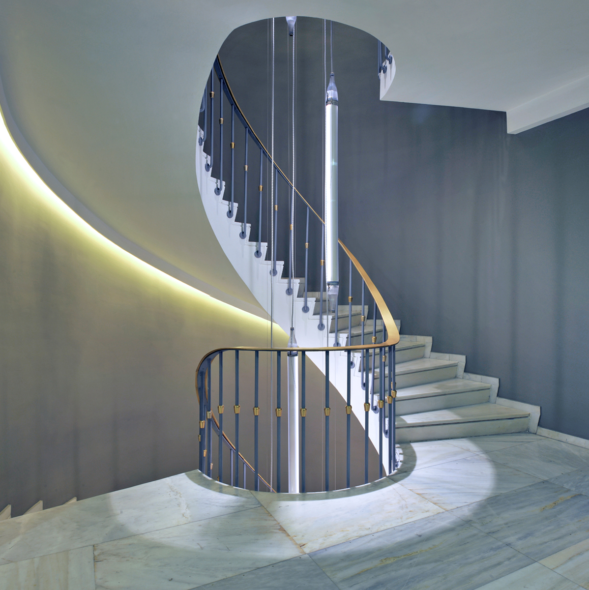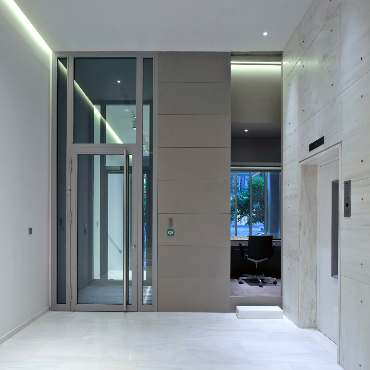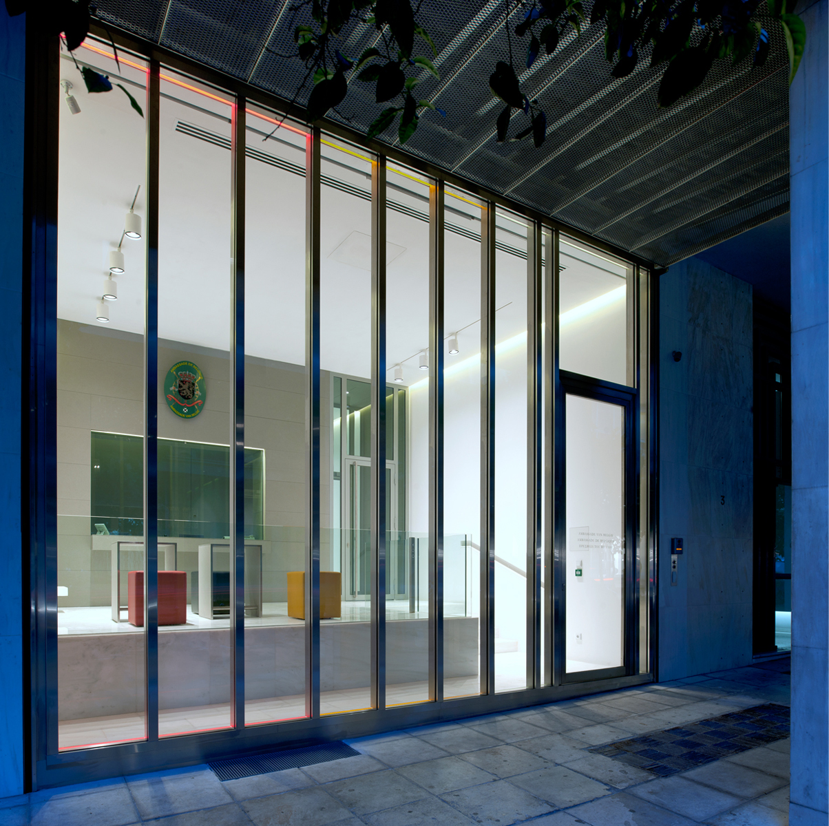 Récemment, l’Ambassade de Belgique établie à Athènes a eu droit à un liefting. Établie au coeur de la capitale grecque, ce bâtiment prestigieux date de la fin des années 60 et est composé de trois étage. Le travail qui a été effectué sur ce bâtiment concerne à la fois la devanture de l’ambassade mais aussi un réaménagement intérieur. Une nouvelle façade, transparente et interactive, en proposant un éclairage qui représente le drapeau du Royaume de Belgique. Cette façade se veut aussi bien protectrice, en offrant des vitres épaisses et une armature qui se déplie ou replie en fonction des besoins. L’accueil qui fait également office de salle d’attente est quant à lui très spacieux et minimaliste. L’acier et le verre sont omniprésents dans ces différents espaces, afin d’offrir une sensation de robustesse et de sécurité.