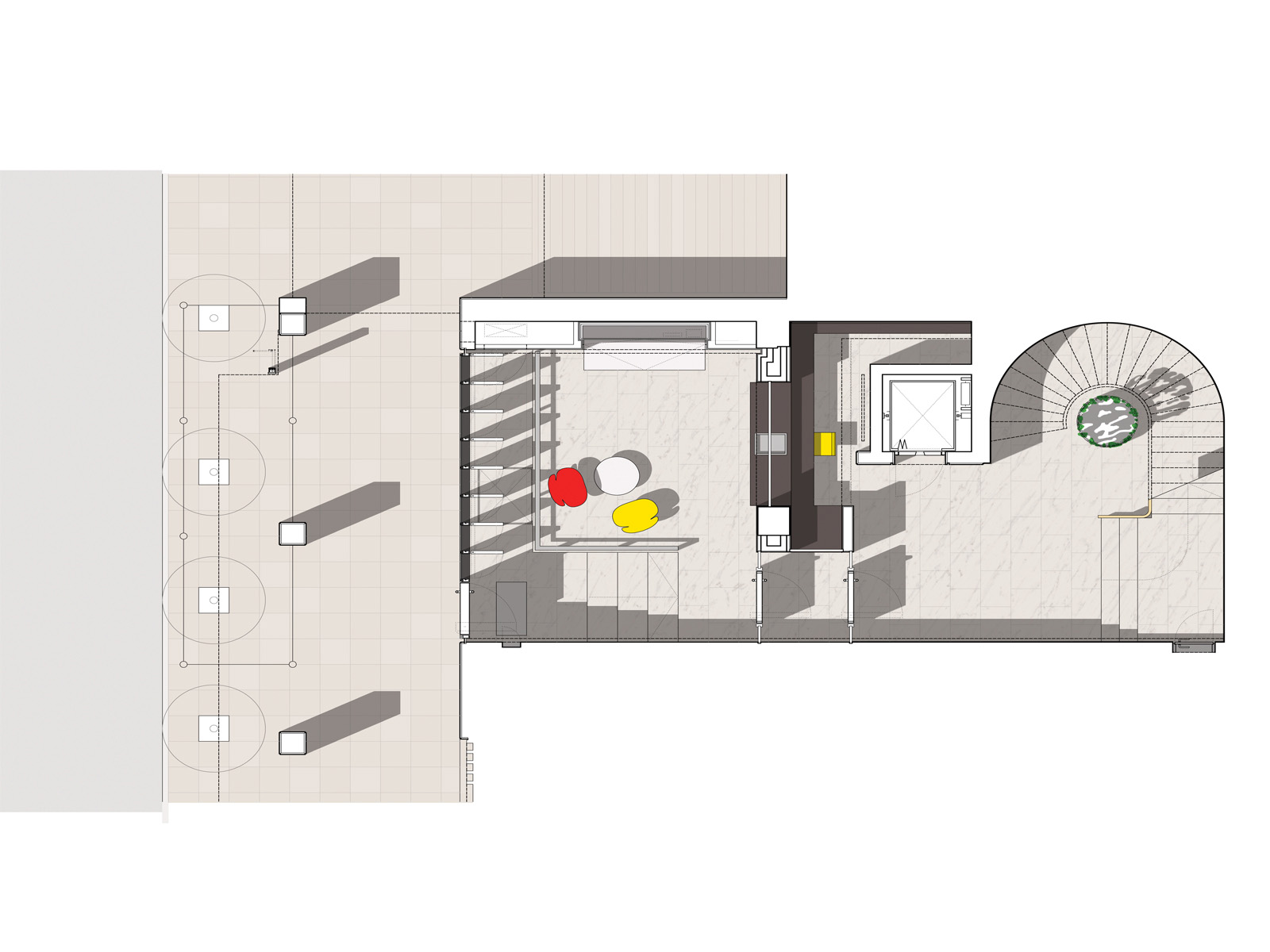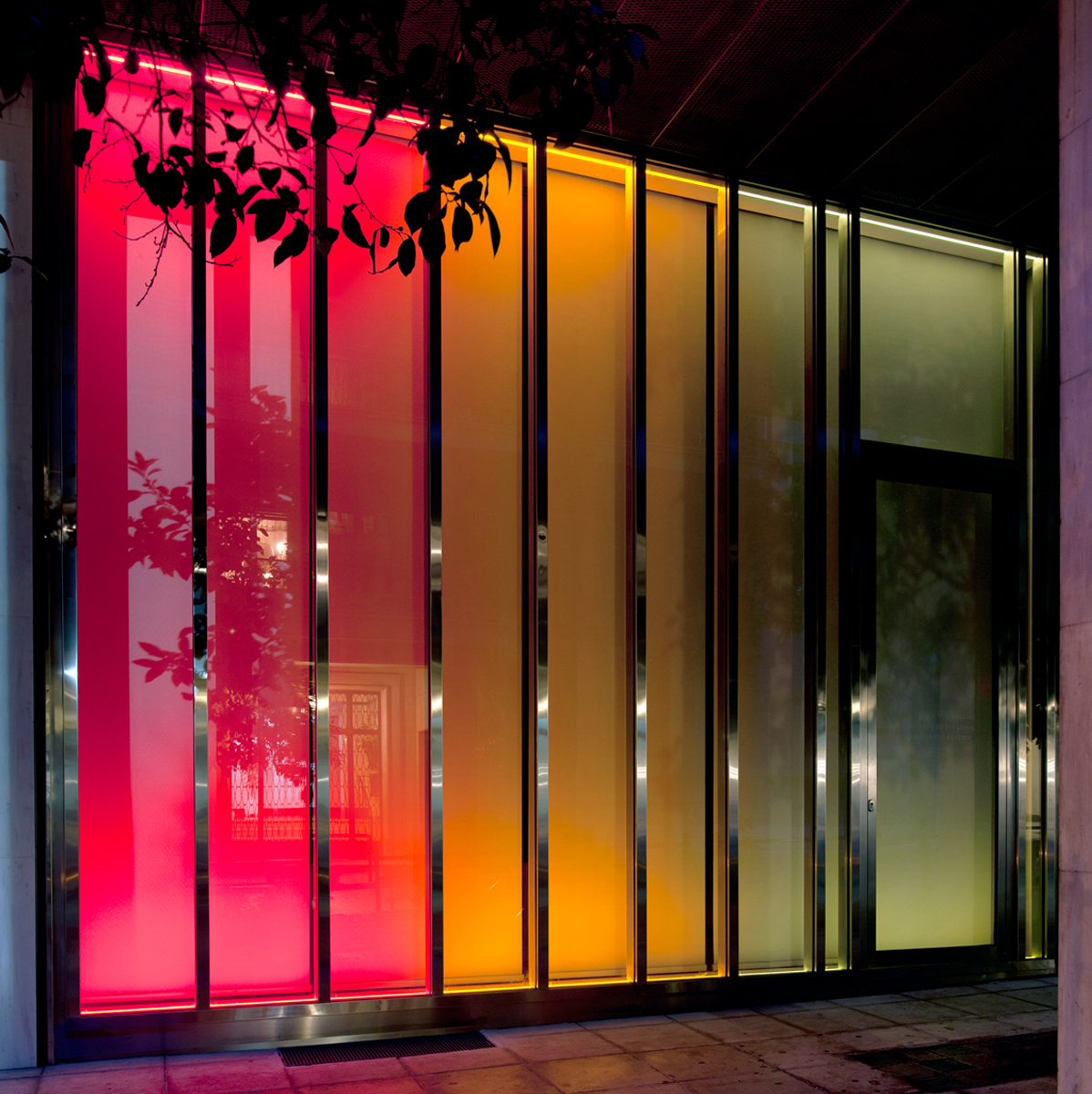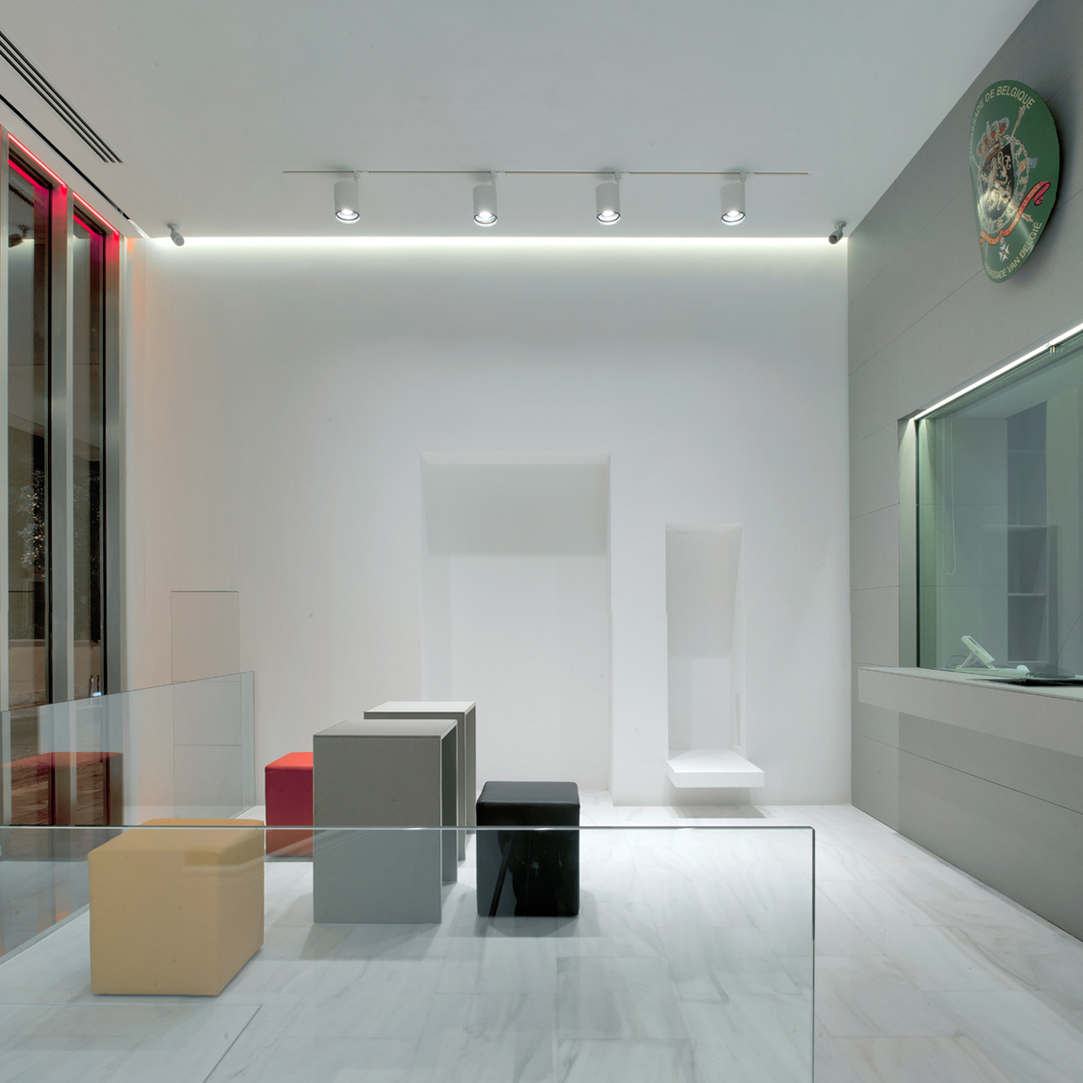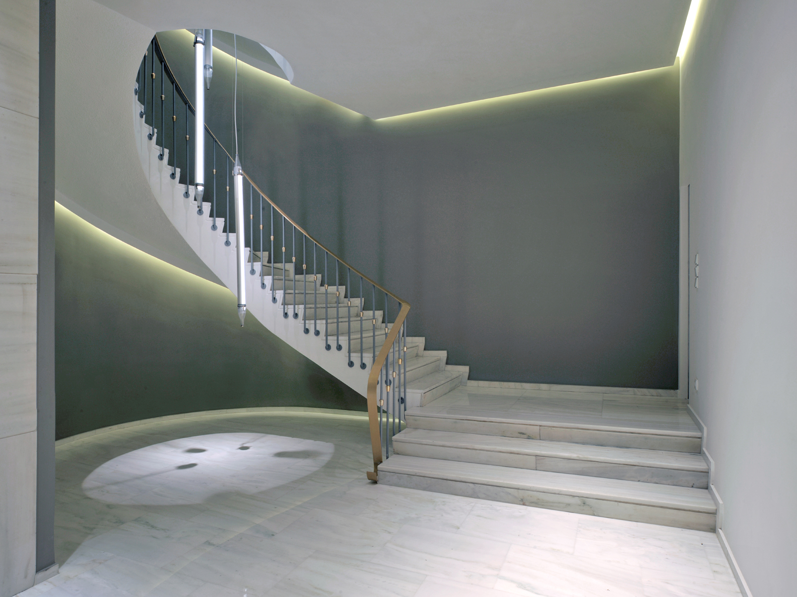 Récemment, l’Ambassade de Belgique établie à Athènes a eu droit à un liefting. Établie au coeur de la capitale grecque, ce bâtiment prestigieux date de la fin des années 60 et est composé de trois étage. Le travail qui a été effectué sur ce bâtiment concerne à la fois la devanture de l’ambassade mais aussi un réaménagement intérieur. Une nouvelle façade, transparente et interactive, en proposant un éclairage qui représente le drapeau du Royaume de Belgique. Cette façade se veut aussi bien protectrice, en offrant des vitres épaisses et une armature qui se déplie ou replie en fonction des besoins. L’accueil qui fait également office de salle d’attente est quant à lui très spacieux et minimaliste. L’acier et le verre sont omniprésents dans ces différents espaces, afin d’offrir une sensation de robustesse et de sécurité.