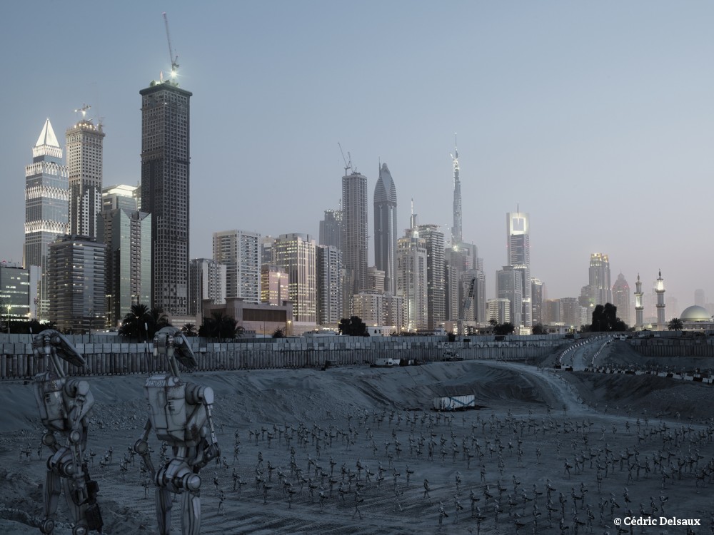 Retour sur cette superbe série baptisée « Dark Lens » initiée par Cédric Delsaux. Fan de la saga Star Wars, Cédric a réussi, au travers de ses photographies à s’approprier cet univers et l’enrichir d’une bien belle manière. C’est ainsi qu’on peut découvrir des clichés réalisés aussi bien à Dubai qu’à Paris, en passant par l’Islande, Lille et d’autres coins encore. Des photographies prises au milieu des bâtiments en ruine ou en construction pour y implanter, et ce avec la dose parfaite, des personnages ou des véhicules de la franchise.