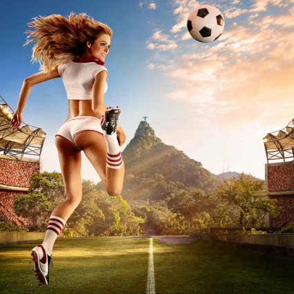 Tim Tadder dont j’ai déjà parlé dans « The Future of Sports » qui nous proposait une vision sur les sports d’avenir, a réalisé un calendrier « 2014 World Cup Calendar » en faisant à nouveau équipe avec Mike Campau. Une manière pour nos deux protagonistes de réaliser un calendrier aux images dynamiques sans bousculer les modèles et leur féminité. Cet excellent travail conjugue à la perfection la combinaison quasi parfaite entre photographies et compositions CGI pour un set d’images unique et vivant. Une manière pour Tim Tadder de rendre hommage au football vivant au Brésil, puisque c’est là bas qu’il a réalisé ses shoots.