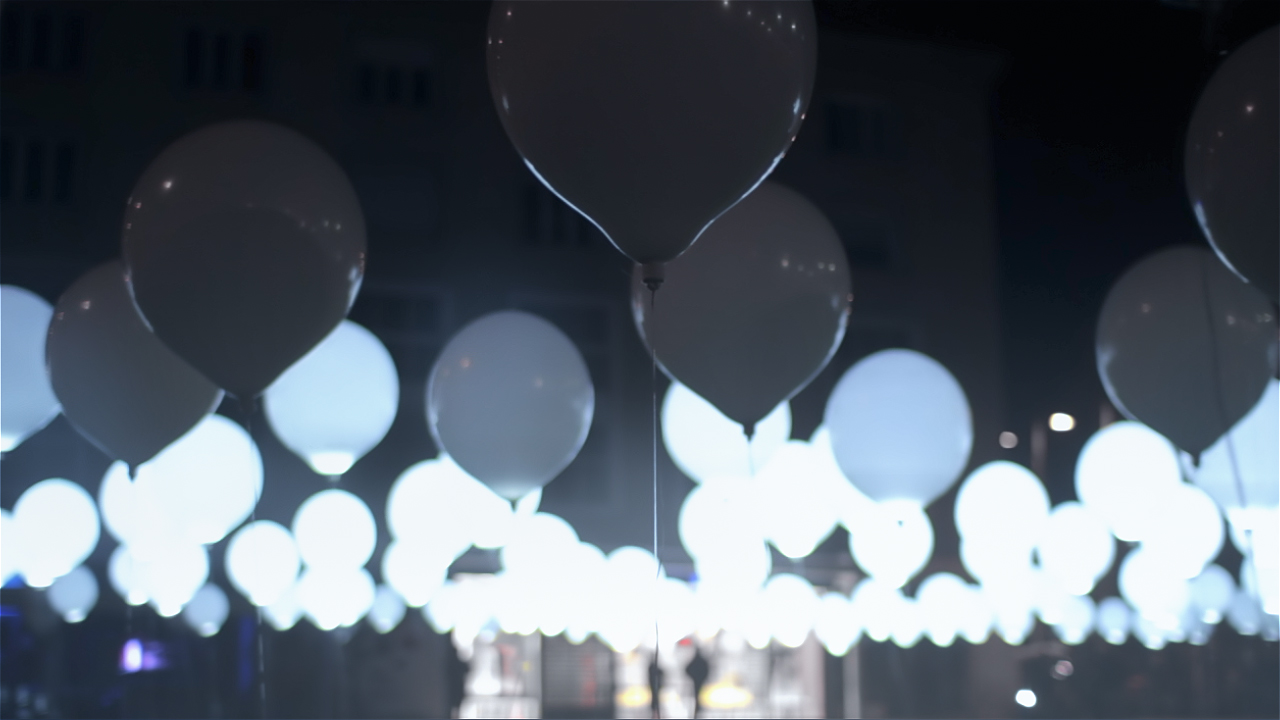 Cyclique est une sculpture cinétique réalisée par Noshita et Collectif Coin. Cyclique, c’est un tableau composé de 256 ballons gonflés à l’hélium et équipés de LEDs. Ces ballons sont les interprètes d’une composition musicale et lumineuse de plus de 700 mètres carrés qui bouge en fonction des vents et des mouvements des passants. Une oeuvre qui transporte les spectateurs dans des paysages artificiels sinesthésique.