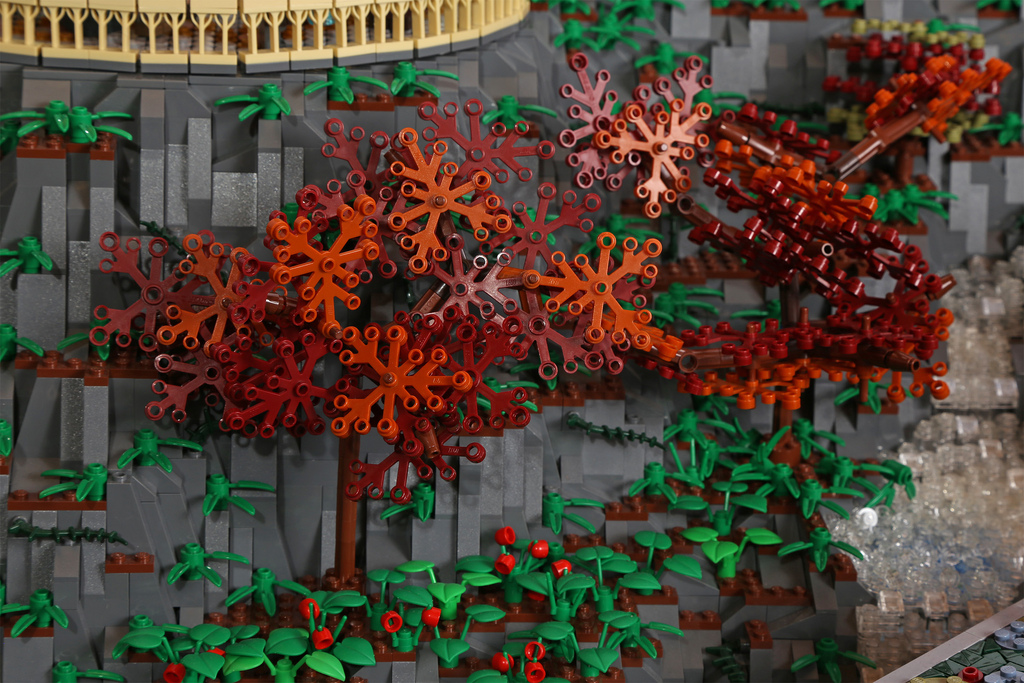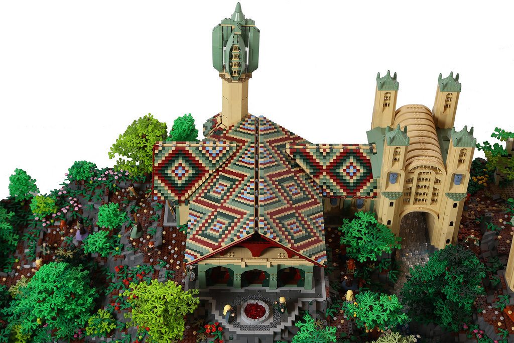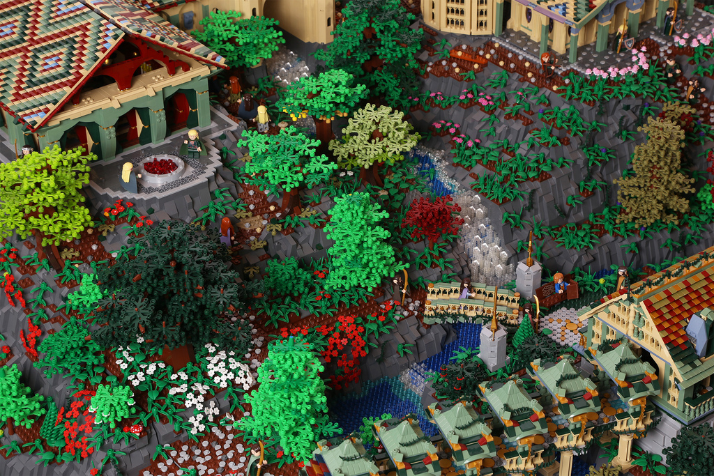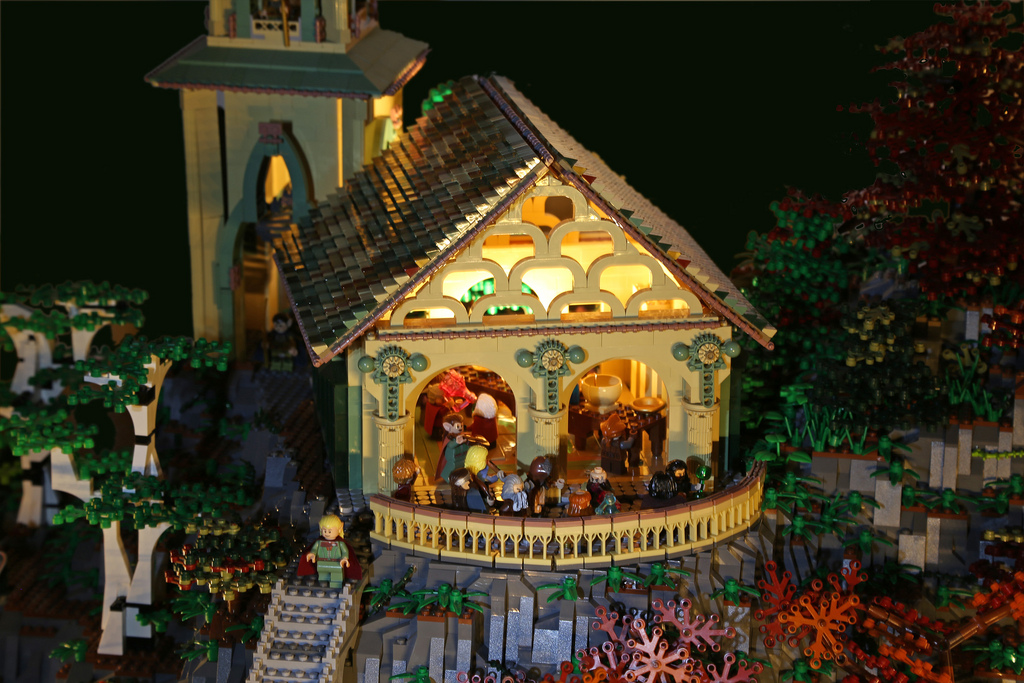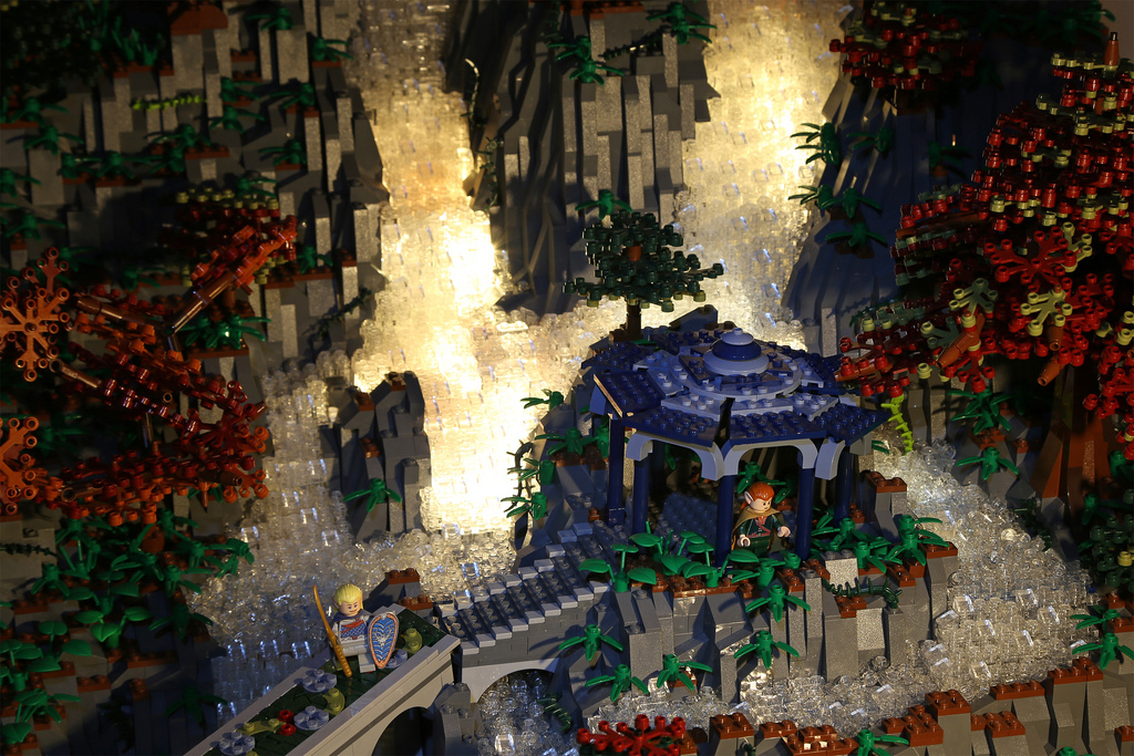Quand deux passionnés du monde de Tolkien et de LEGO se réunissent, le résultat ne peut être que bluffant. C’est en tout cas le cas du superbe travail d’Alice Finch et David Frank qui se sont associés pour réaliser une construction impressionnante de la cité des elfs au nom de Fondcombe ou Rivendell (pour les puristes). Cette cité Elfe est présente dans la trilogie du Seigneur des Anneaux. On peut notamment l’apercevoir resplendissante dans le premier épisode quand Frodo est mourrant. Un travail qui a nécessité pas moins de 200.000 briques et des mois de travail pour réaliser cette construction. Une oeuvre qui mesure pas moins de trois mètres de long. Le must, c’est qu’on retrouve tous les éléments visibles dans chaque films de la trilogie de l’Anneau ou du Hobbit. Ainsi, on retrouve les lieux importants, les rivières. Nos deux compères ont même été jusqu’à incruster des ampoules afin de donner vie à cet endroit magique.