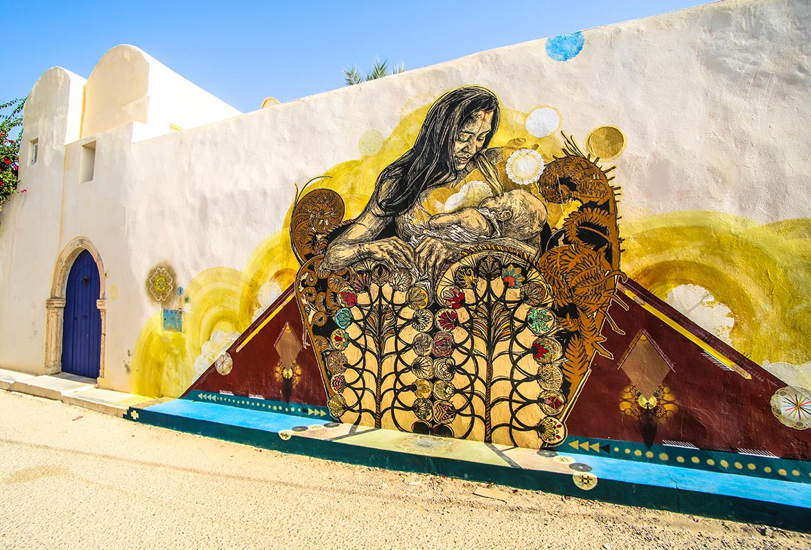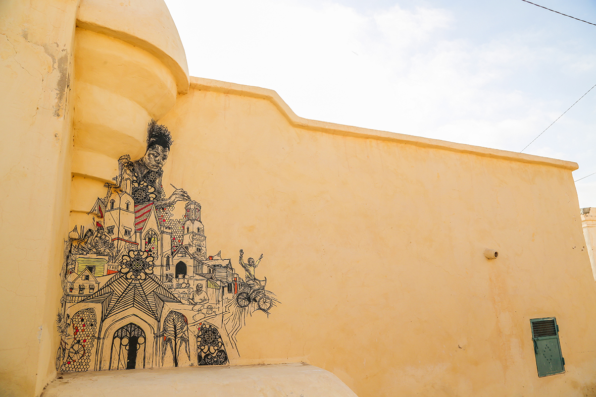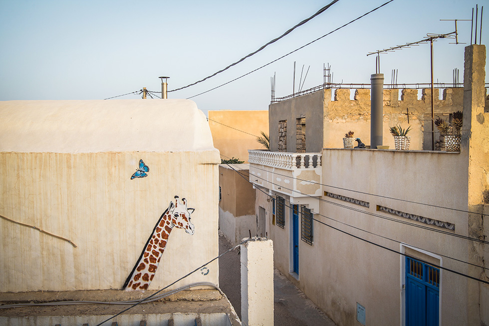 C’est pas moins de 150 street artists venus du monde entier qui ont eu l’occasion de redonner des couleurs à un petit village tunisien. Le projet intitulé «Djerbahood» a été initié par la Galerie Itinerrance.