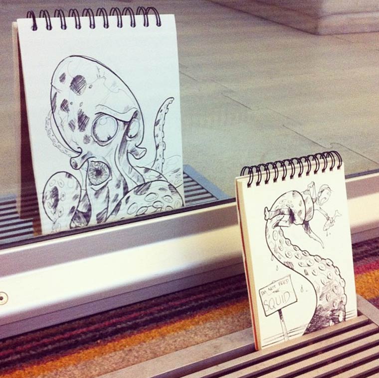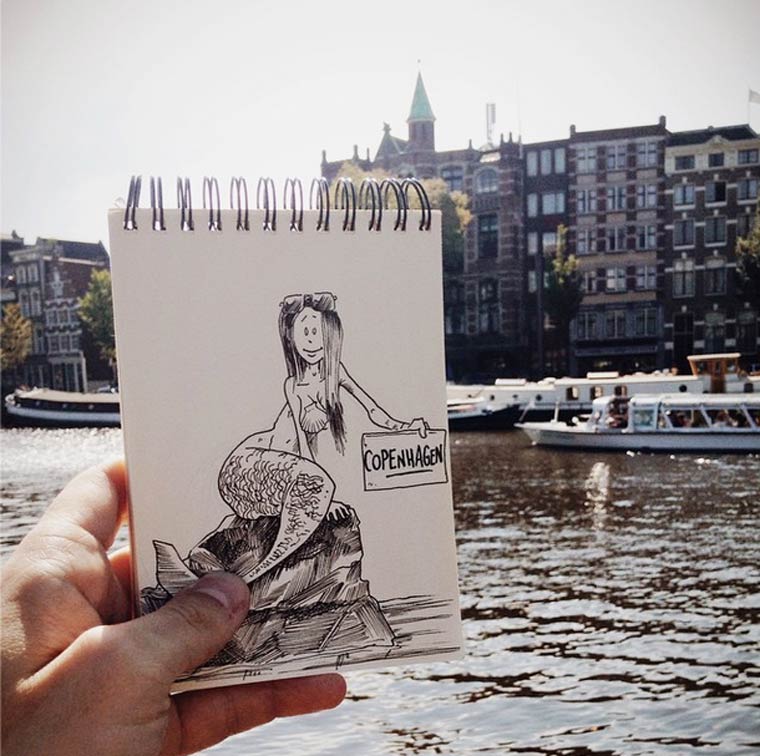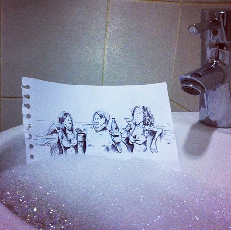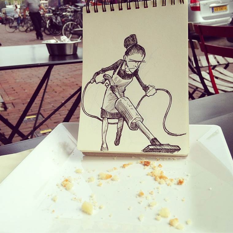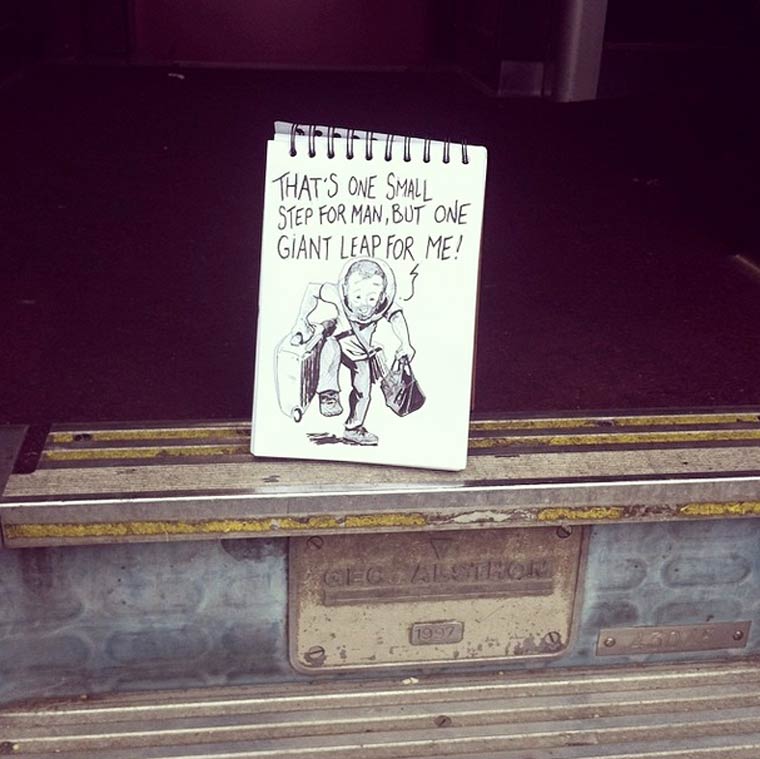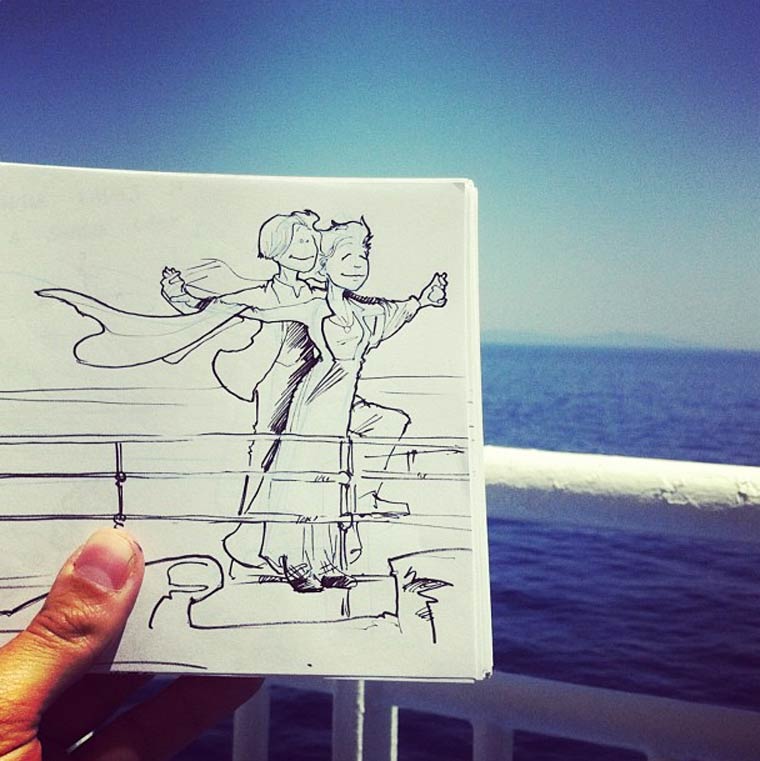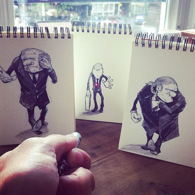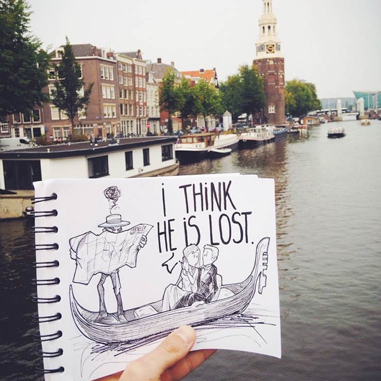 Voilà une idée pleine d’humour. L’illustrateur et directeur artistique Troqman crée des dessins qu’il place à certain endroit bien précis. De cette manière, cela lui permet de recréer une scène complètement différente de celle d’origine, mais mieux encore, ces dessins intéragissent avec le milieu dans lequel elles sont placées. Une manière d’amener la scénarisation à un tout autre niveau.