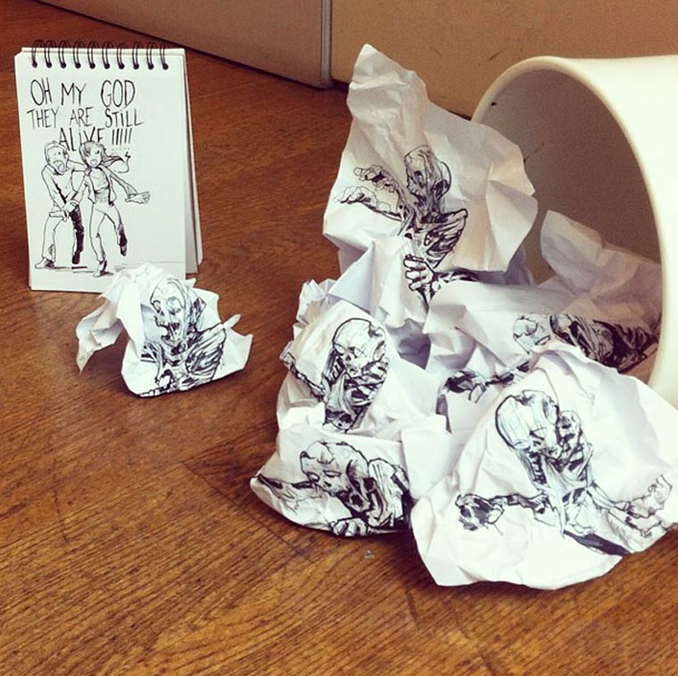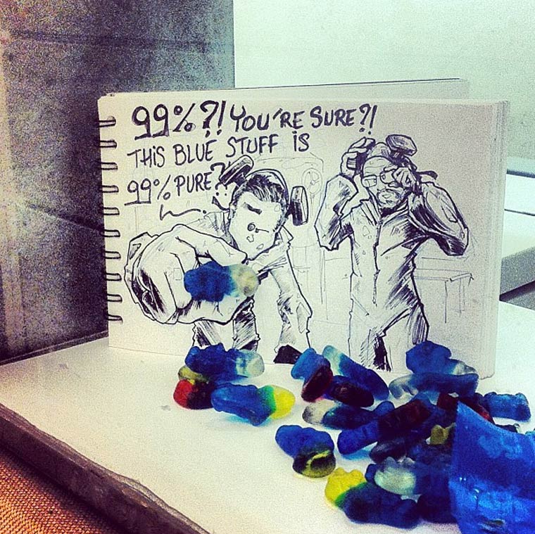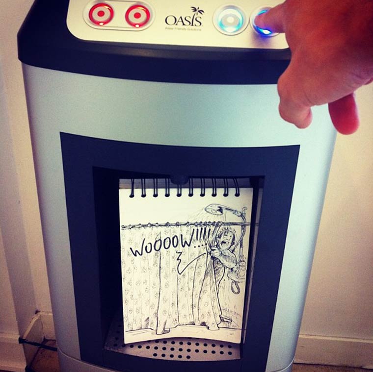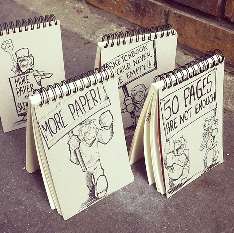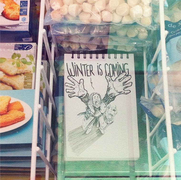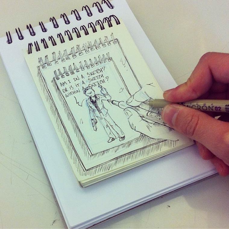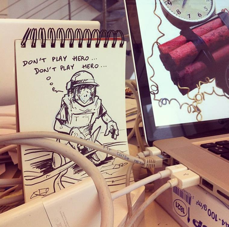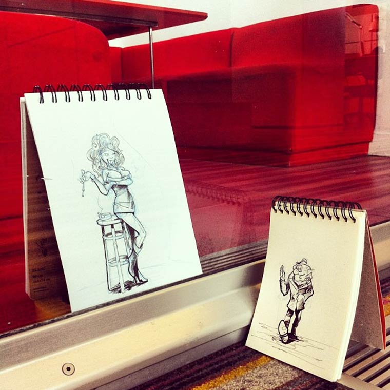 Voilà une idée pleine d’humour. L’illustrateur et directeur artistique Troqman crée des dessins qu’il place à certain endroit bien précis. De cette manière, cela lui permet de recréer une scène complètement différente de celle d’origine, mais mieux encore, ces dessins intéragissent avec le milieu dans lequel elles sont placées. Une manière d’amener la scénarisation à un tout autre niveau.