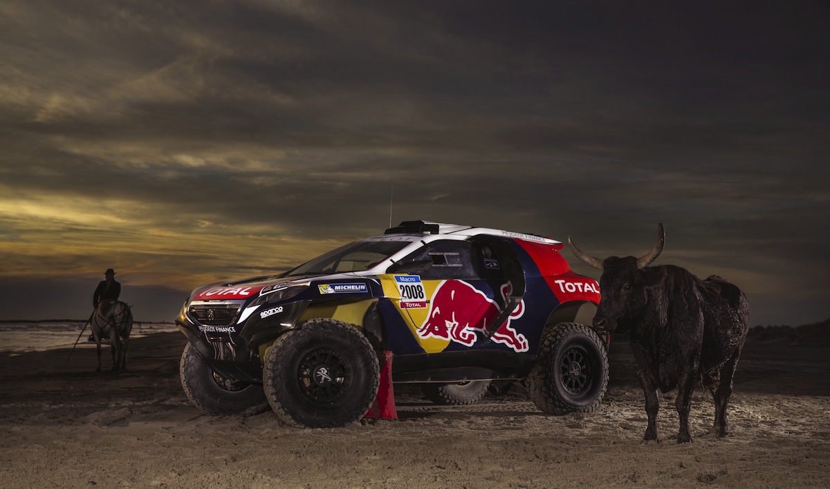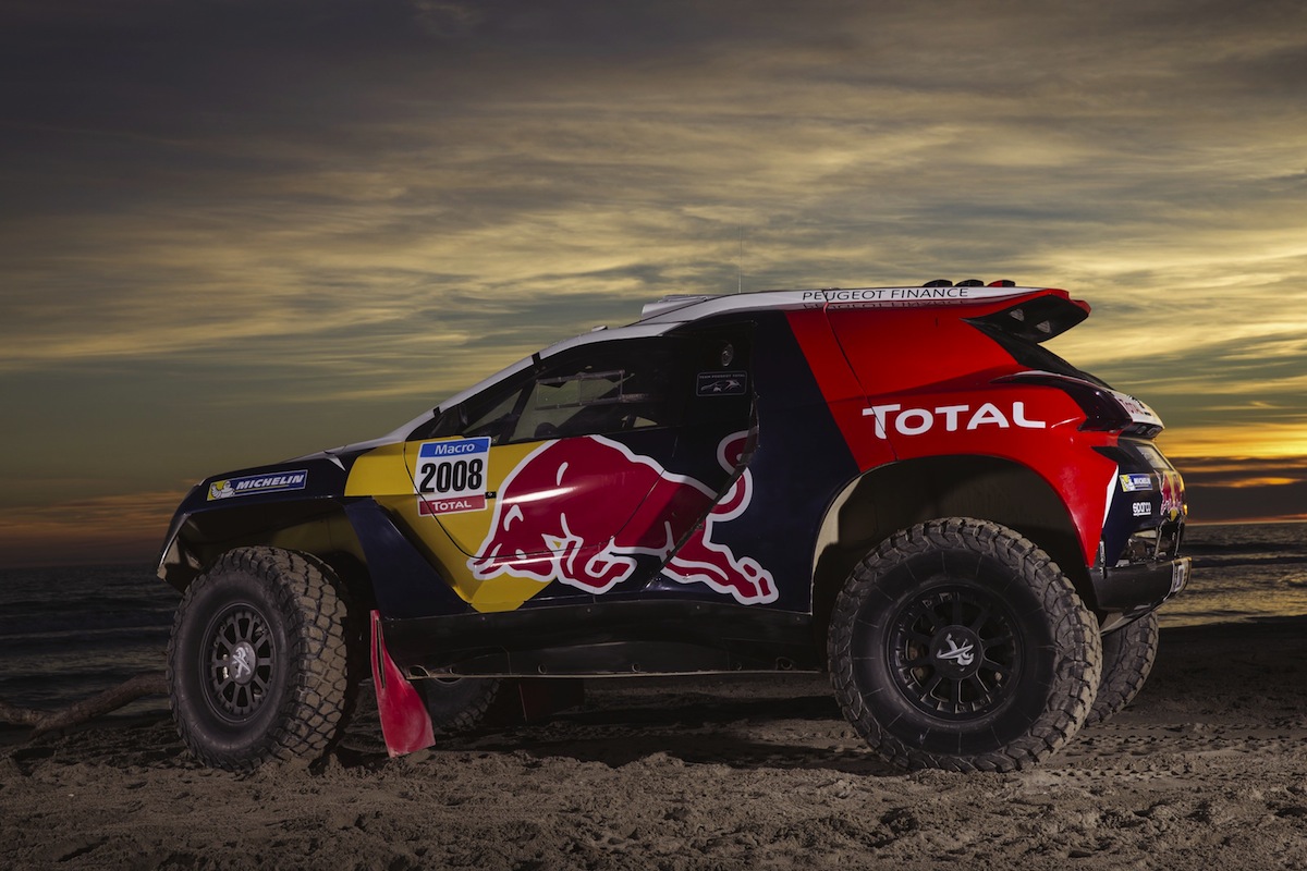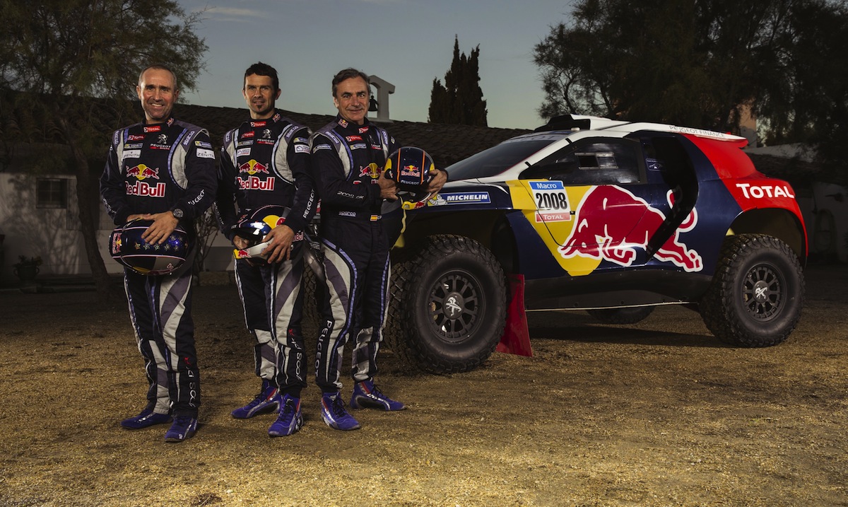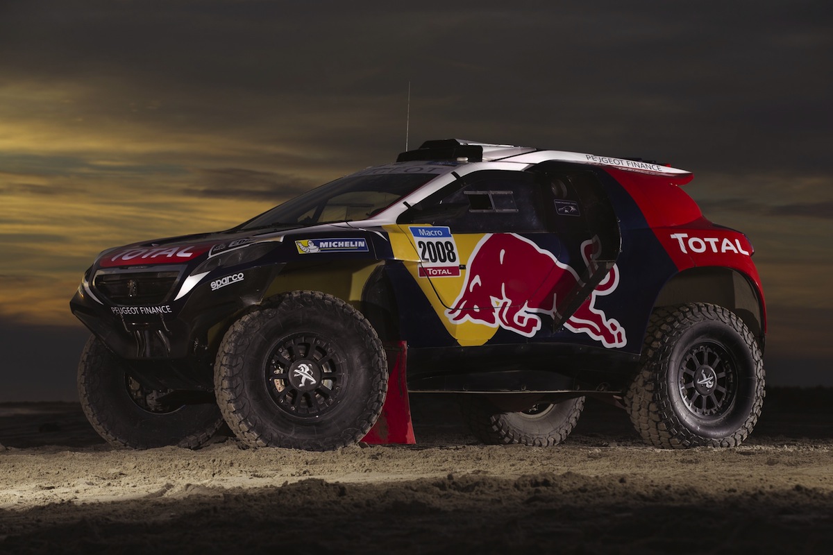 L’écurie Peugeot Total a levé le voile intégrale de sa nouvelle arme fatale destinée au Dakar 2015. Un retour aux sources à l’époque où Peugeot dominait l’épreuve qui traversait alors encore le Sahara. C’est donc après 25 ans d’absence et beaucoup d’expérience cumulée ces dernières années dans différentes types d’épreuves que la marque au lion revient. Pas de surprise pour la livrée, Peugeot Total a comme sponsor principal Redbull et Total (évidemment). Ce qui donne une livrée avec comme couleur dominante le bleu nuit de RedBull, du jaune et du rouge. Une livrée en soit très équilibrée. Reste à voir si après 25 ans, Peugeot va pouvoir réitérer de nouveaux exploits. C’est tout le mal qu’on peut souhaiter à cet équipage composé de Carlos Sainz, Stéphane Peterhansel et Cyril Despres.