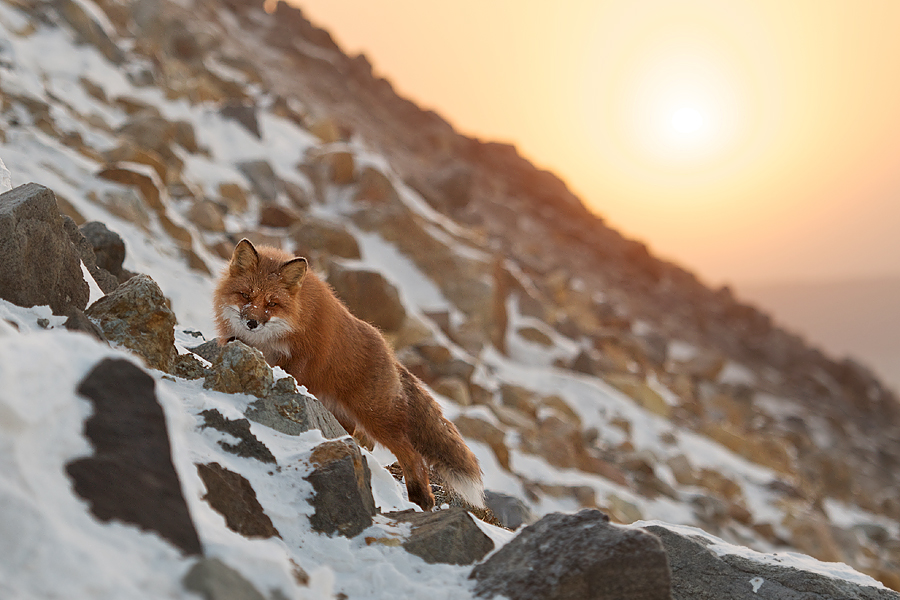 Superbes portraits de renards réalisés par le russe Ivan Kislov. Un vrai russe au sens propre du terme. Minier en semaine, il adore se promener dans la nature sauvage le week end. Et cette passion l’a conduit à découvrir ce que Mère Nature peut offrir de mieux, la beauté des animaux à l’état sauvage. Pour sa dernière série de photographies intitulée Foxes, il a réalisé des portraits de cet animal qui attise haine et beauté, le renard. Des animaux très curieux qui sont à découvrir. La qualité des images est impressionnante et sa série de portraits est digne de figurer dans le National Geographic par exemple. Car Ivan Kislov a réussi à mettre en valeur le renard de telle manière qu’on pourrait le considérer comme un animal de compagnie et non comme un animal sauvage. Bref, de superbes photographies à découvrir, histoire de vous donner l’envie d’abandonner votre chat, pour adopter un renard.