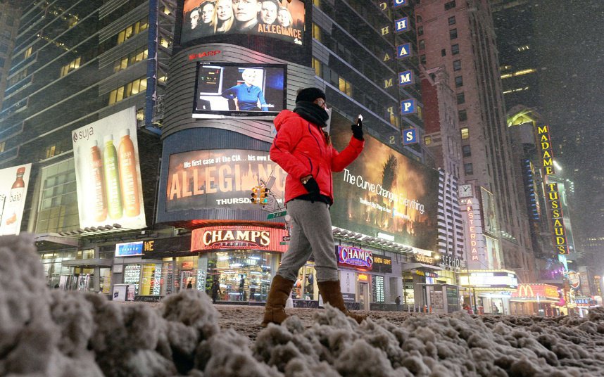 New York, une ville fantomatique ? Qui aurait pu prévoir telle chose ? Les prévisions avaient annoncés une tempête de neige sans précédent sur la Grande Pomme. Pendant 24 heures, la ville qui ne dort jamais semblait s’être arrêté. Des artères où se croisent taxis jaunes et autres véhicules qui se sont retrouvées vides. Sauf pour quelques courageux intrépdies armés de leur doudoune, qui en ont profité pour arpenter les rues de New York, et ce malgré l’avertissement de la ville de rester chez eux.
