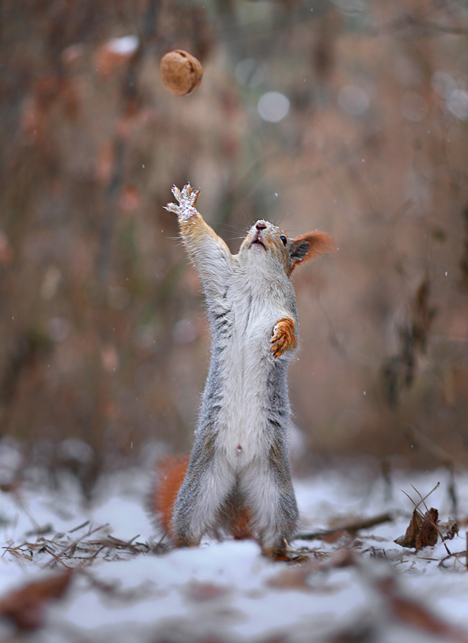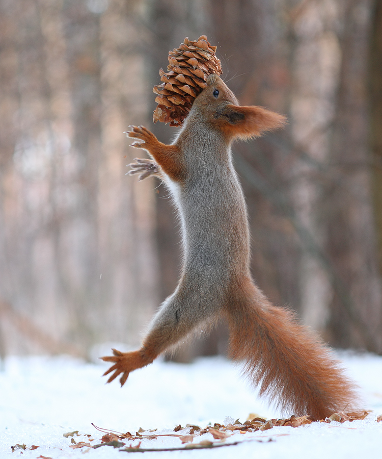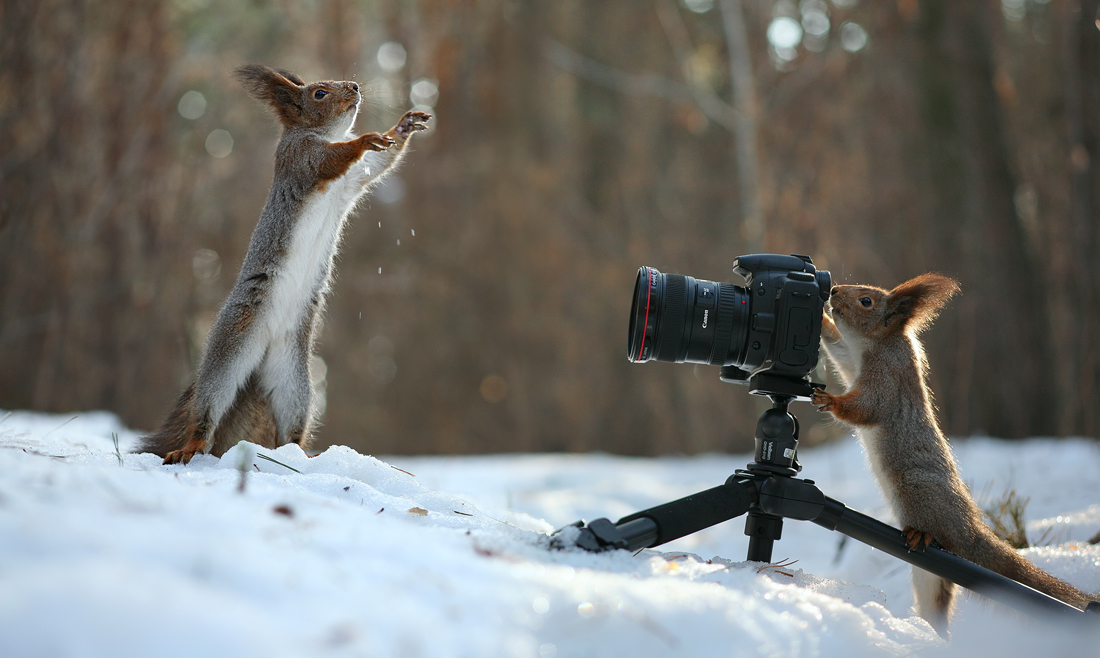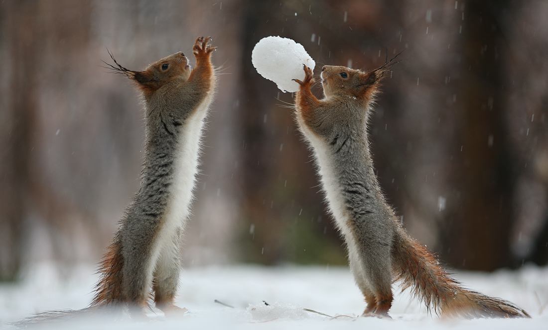 Le talentueux photographe Russe Vadim Trunov a pu approcher des écureuils de plus prêts. Certes, les photos mignonnes d’écureuils sont légions, mais de les voir jouer ou se prendre en photo, c’est plutôt rare. Du coup, Vadim Trunov a publié certaines photos de ces écureuils où on pourrait croire que ceux-ci construisent des bonhommes de neige ou encore, qu’ils jouent au volley avec des noix ou des petites boules de neige. Bien sûr, la vérité est toute autre. Les écureuils ont faim et veulent de la nourriture, ce qui a permis au photographe de faire ses plans. Quoiqu’il en soit, pour les amoureux de la nature, les photographies de Vadim Trunov sont à découvrir.