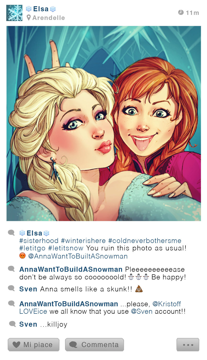 Que feraient les personnages Disney si ils étaient bien réels et vivaient à notre époque ? Est-ce qu’ils utiliseraient les réseaux sociaux que nous connaissons ? C’est en tout cas une question de la graphiste italienne Simona Bonafini qui a imaginé à quoi pourraient ressembler les comptes Instagram grands personages de Disney si ils en avaient. Il est très amusant de les imaginer au travers de ces diverses créations. C’est ainsi qu’on peut découvrir Gaston et son amour inconditionnel pour son corps sculpté, Hercule, Alice, Ariel, Elsa et Anna, ou même encore Merlin qui a pris des vacances sabbatiques. Bref, des images qui tombent sous le sens si vous vous rappelez de certaines scènes précises des divers long métrages d’animations où ces personnages Disney apparaissent.