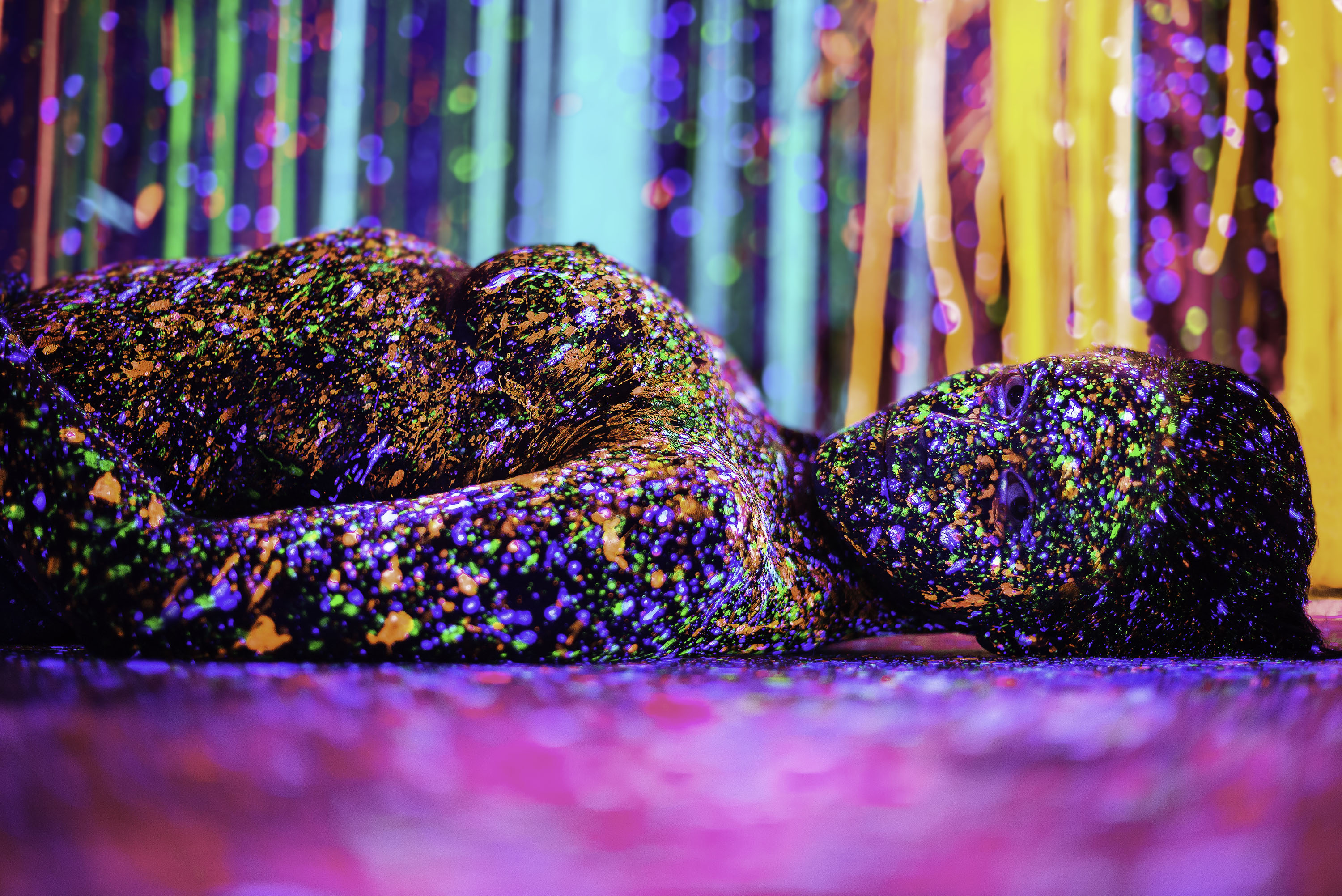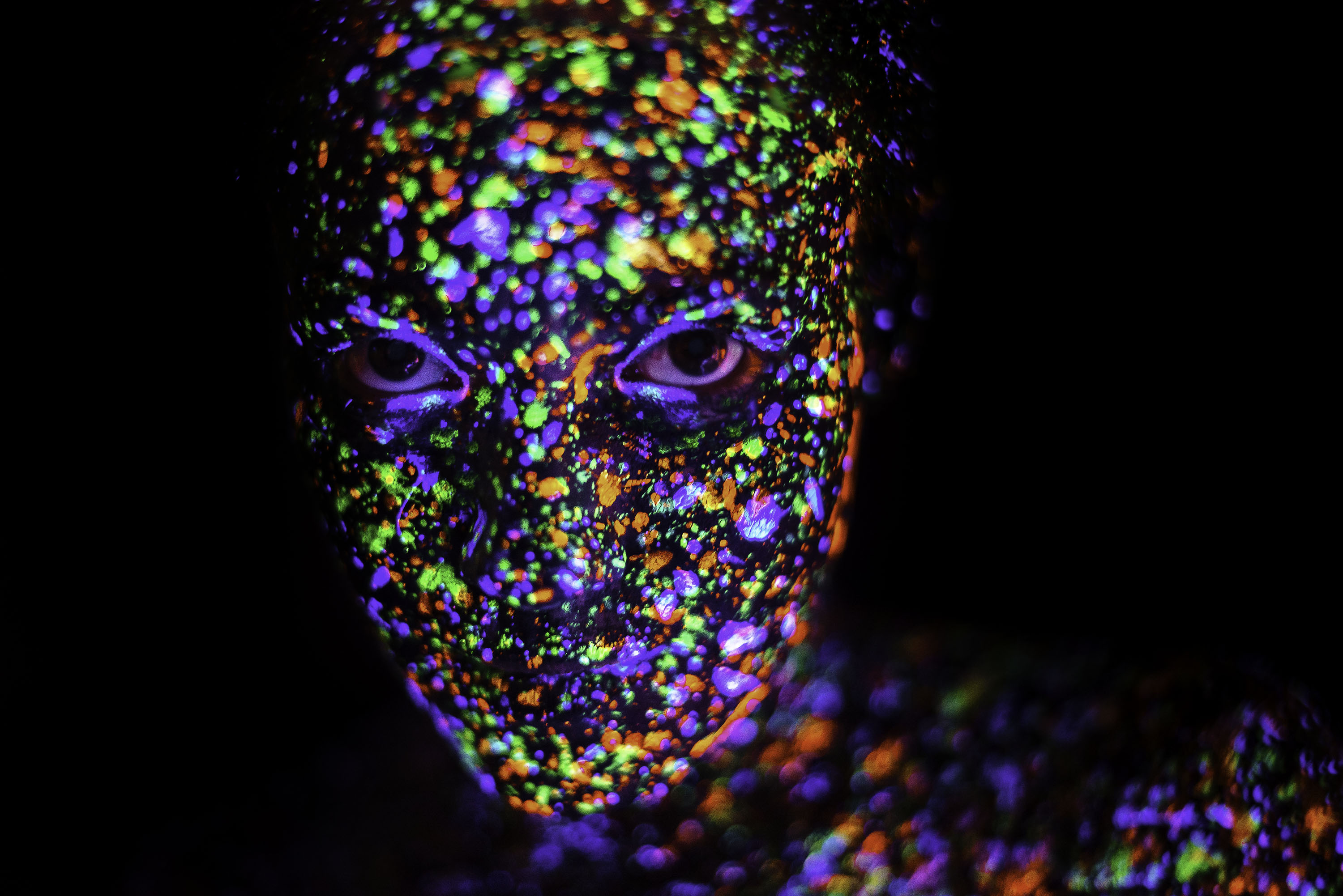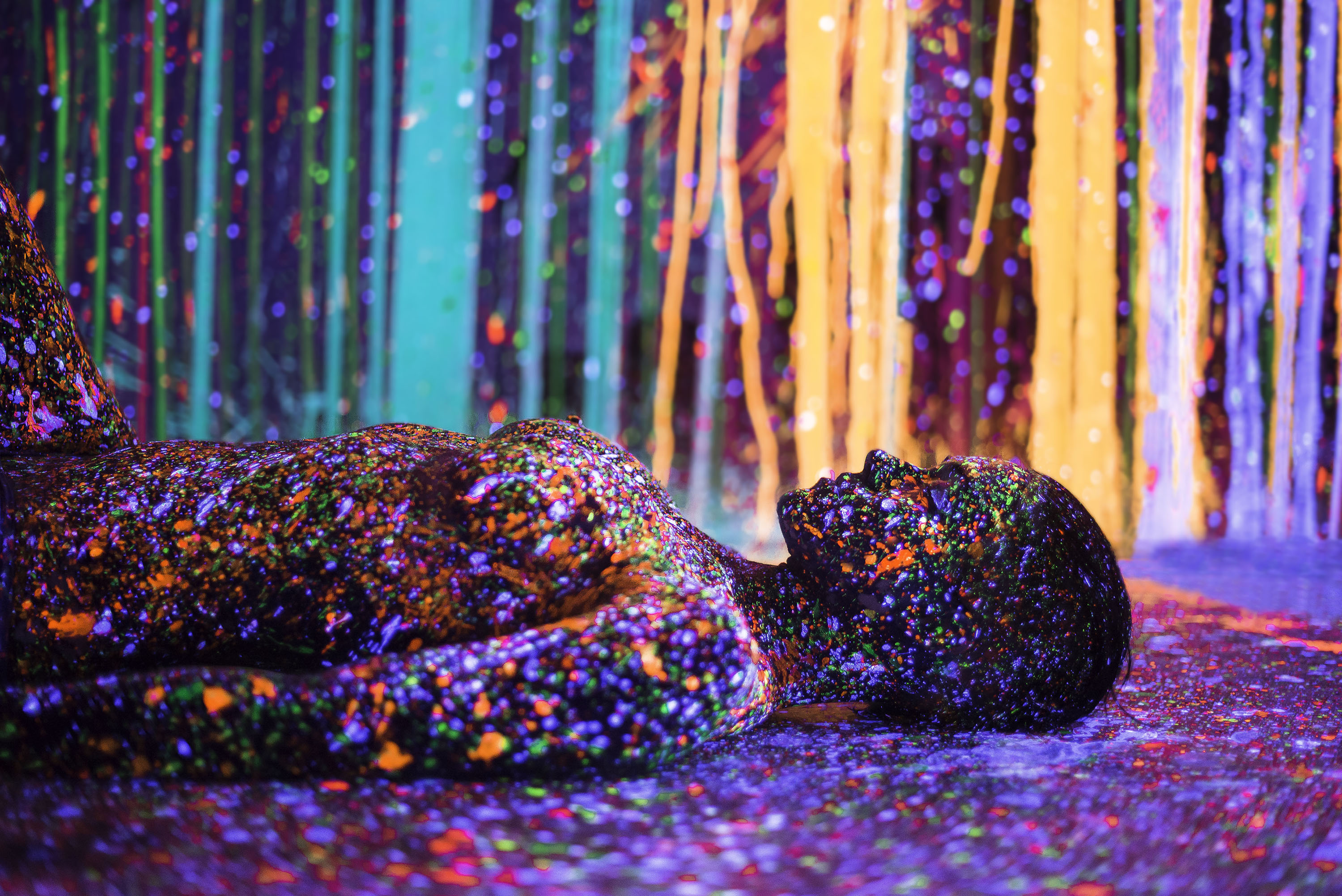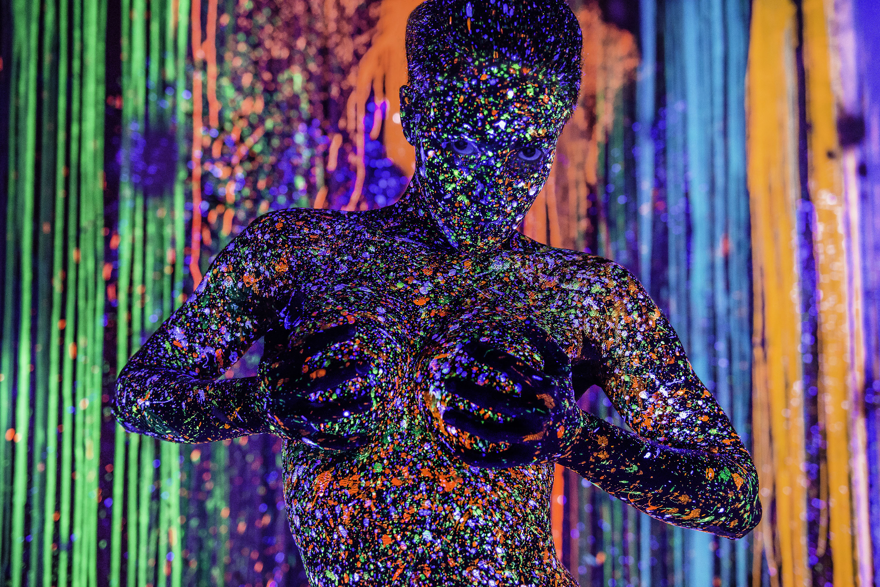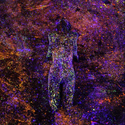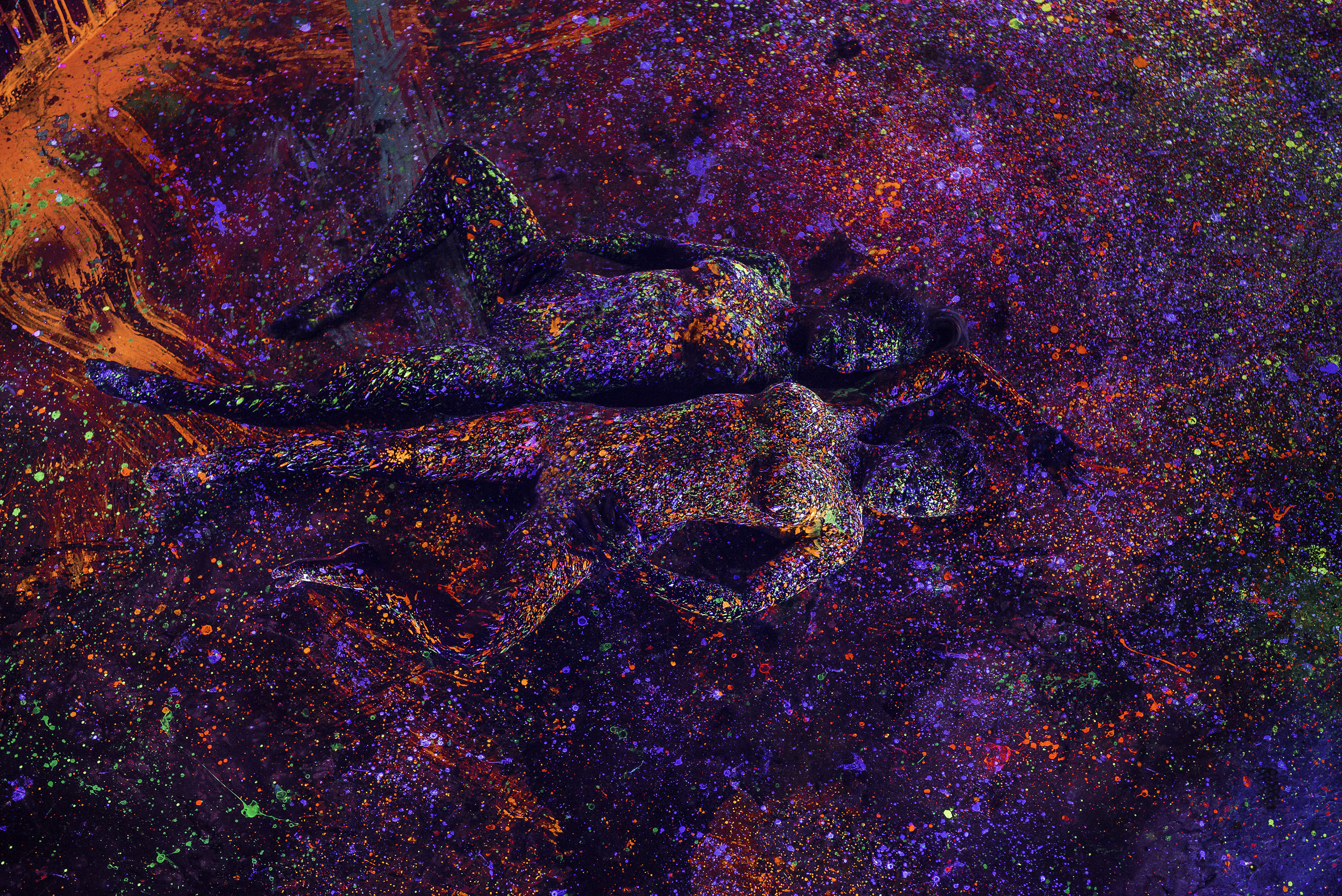 Lost In Infinity Split est un travail collaboratif du photographe Alex Markow et de l’artiste Magnus Sodamin. Ce projet montre le corps de femmes recouverts par une peinture fluorescente. Leurs corps se mêlent dans un décor similaire où l’ensemble ne semblent faire qu’un, grâce à la diffusion d’une lumière noire.