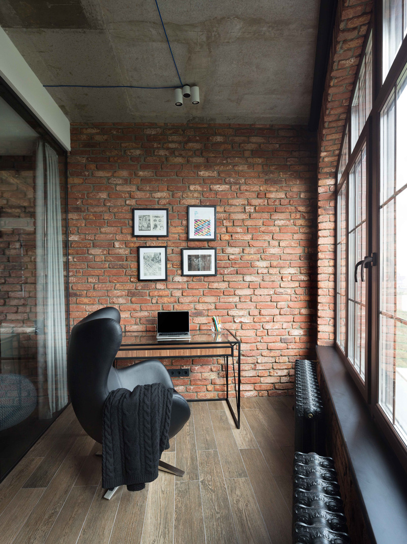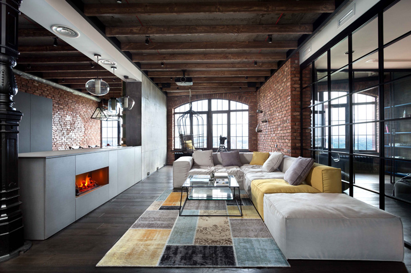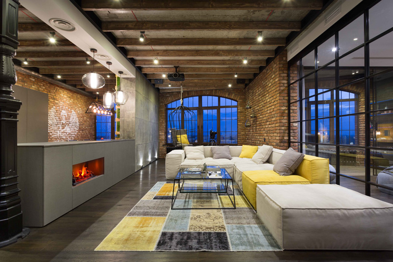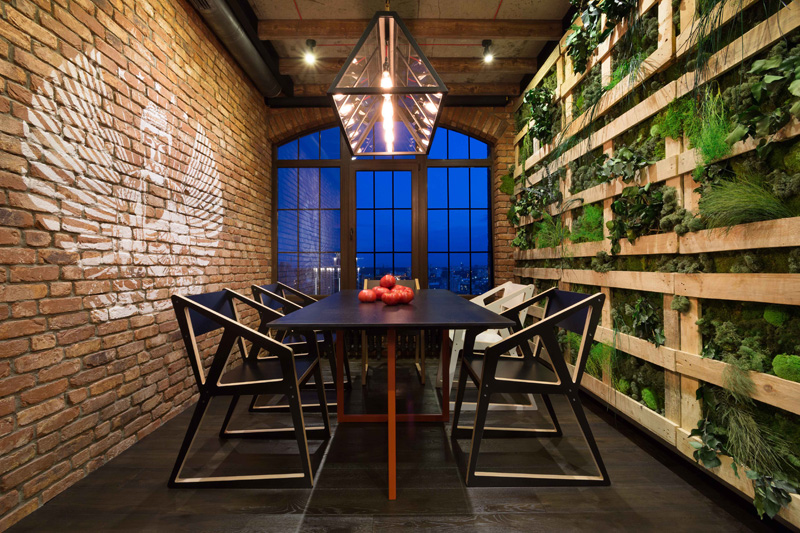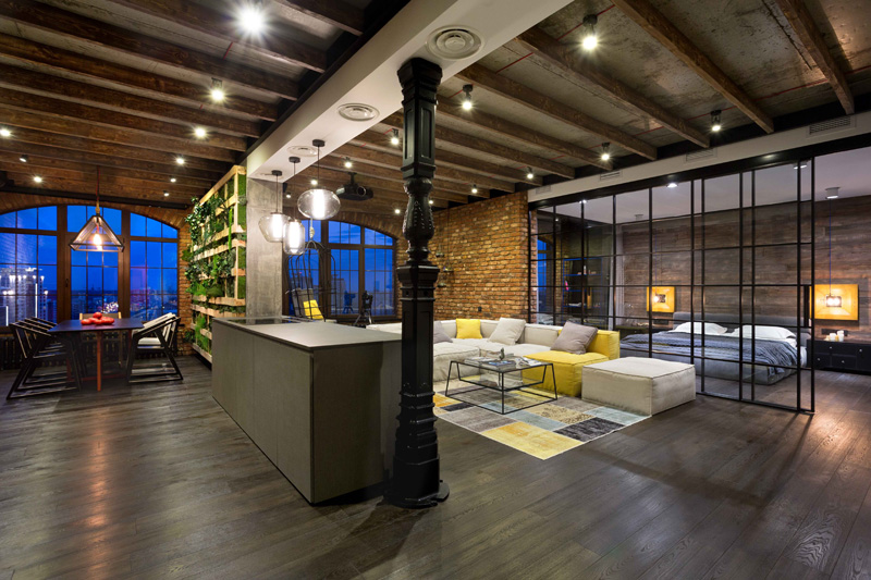 Igor Martin et Olga Novikova du cabinet d’architectes MARTINarchitects ont réalisé un superbe loft pour un avocat au coeur de Kiev, en Ukraine. Ce loft est situé dans une nouvelle construction dans la ville de Kiev. Et pour ce jeune avocat, l’essentiel était de pouvoir recevoir des amis, notamment pour des parties de jeux de cartes. Egalement, cet espace a été agencé pour rester lumineux. La domotique n’est pas en reste, l’heureux propriétaire pouvant contrôler les lumières, rideaux etc depuis son smartphone. Beaucoup de luminosité, des briques apparentes pour donner un cachet moderne et luxueux à ce loft.