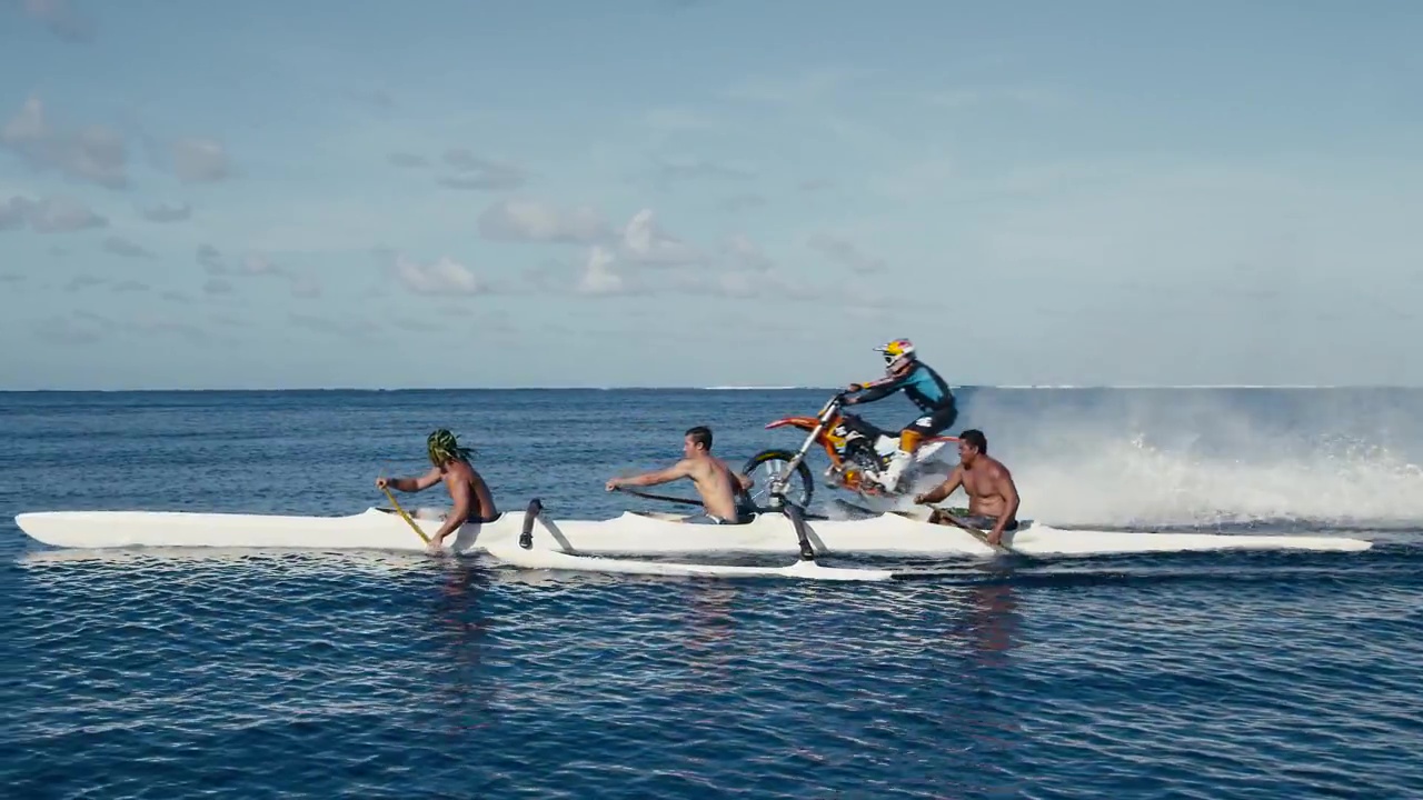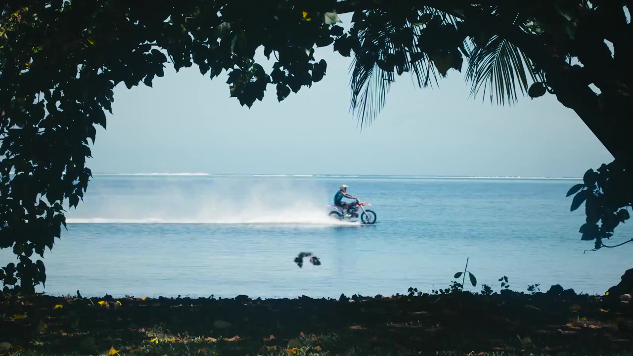 Depuis deux ans, Robbie “Maddo” Maddison avait une envie, pouvoir surfer sur sa moto. Il n’a pas accompli son rêve n’importe où, mais à Teahupoo et Papara, des lieux de Tahiti, en Polynésie Française, dans des eaux salées en bordure du Pacifique. Bref, la vidéo propose des plans magnifiques de l’île et des alentours ainsi que des eaux turquoises. Une vidéo pour les amateurs de moto aussi bien que les jolis paysages qui font rêver ou donnent envie de partir en vacances..