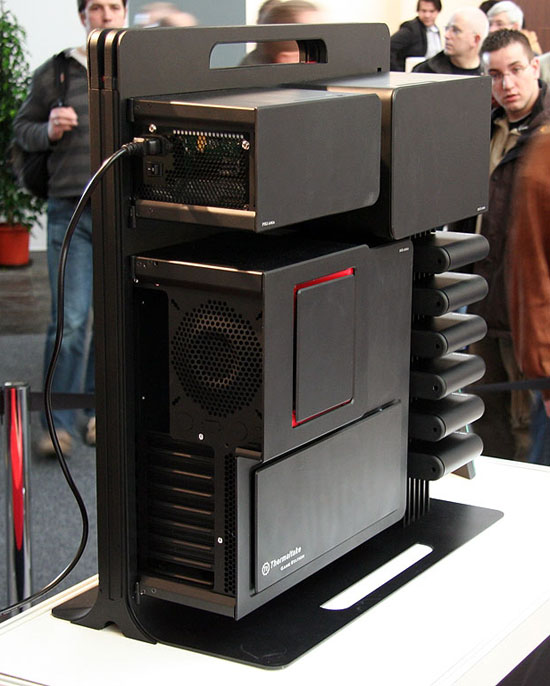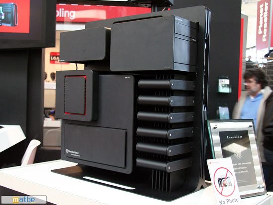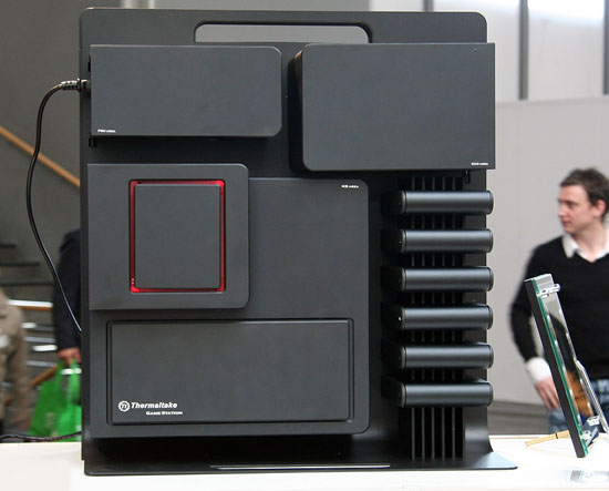 Excentrique à souhait il est très difficile de décrire le Thermaltake Level 10 qui ne ressemble vraiment à aucun autre boîtier. Ce que l’on sait pour l’instant, c’est qu’il accepte six disques durs, qu’il propose en façade des ports audio, quatre USB et un port eSATA. Les composants disposent chacun de leur propre compartiment et d’après les dires de Thermaltake, même s’il ne s’agit pour l’instant que d’un concept, le Level 10 sera bel et bien commercialisé dans l’avenir.