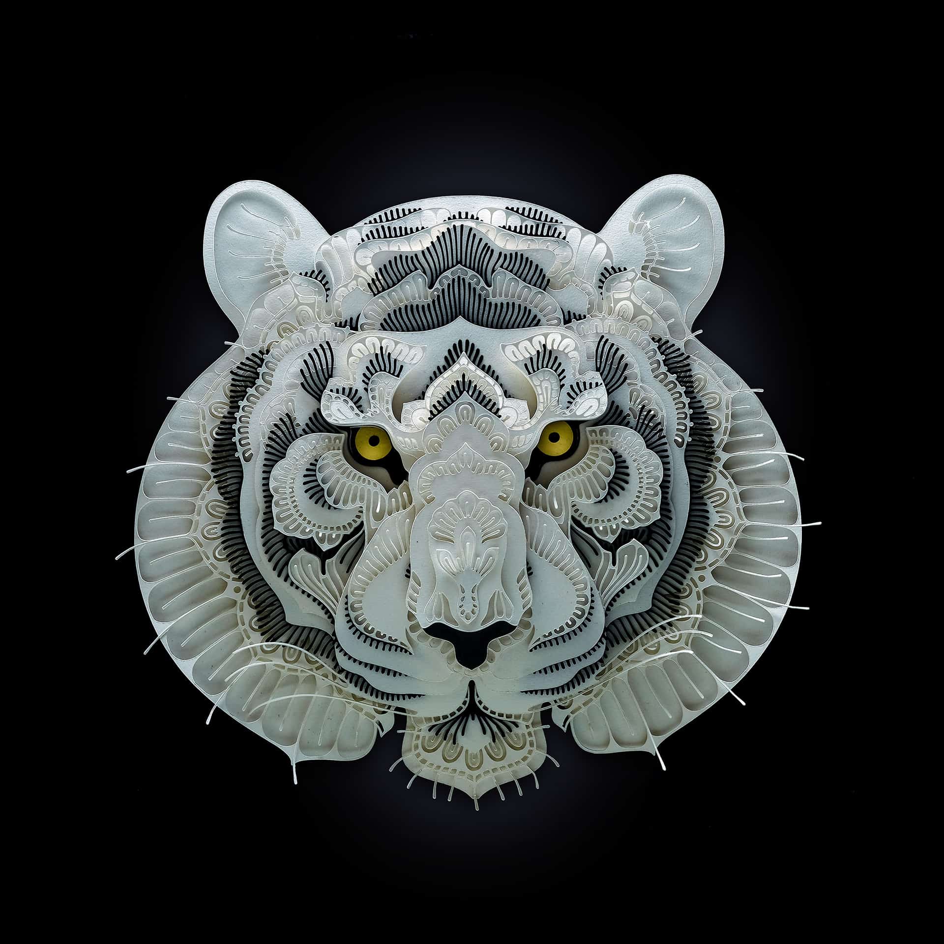 Dans le cadre d’une série en cours intitulée Endangered Species (les Espèces menacées), Patrick Cabral vivant à Manille a créeé de superbes portraits de ces animaux. Cela va du tigre, au panda en passant par l’ours polaire et d’autres espèces. Un travail très minutieux car ces portraits ont été réalisés par super position de couches de papiers, découpées délicatement à la main.