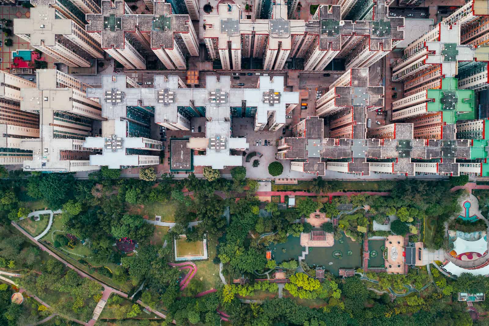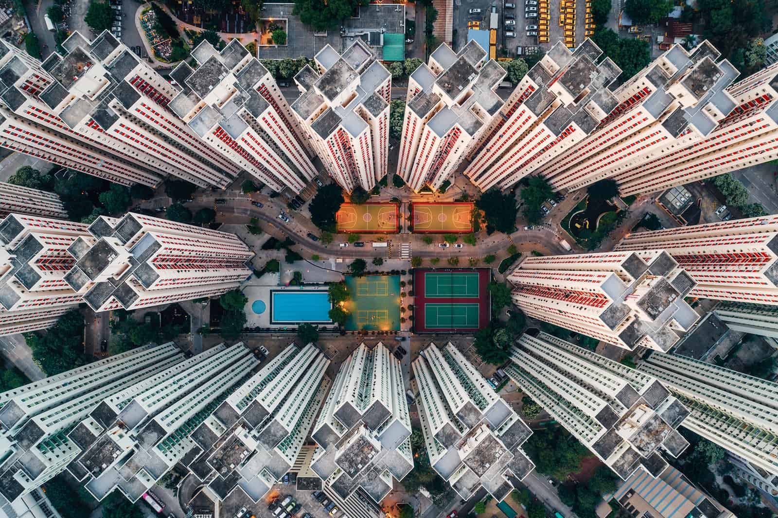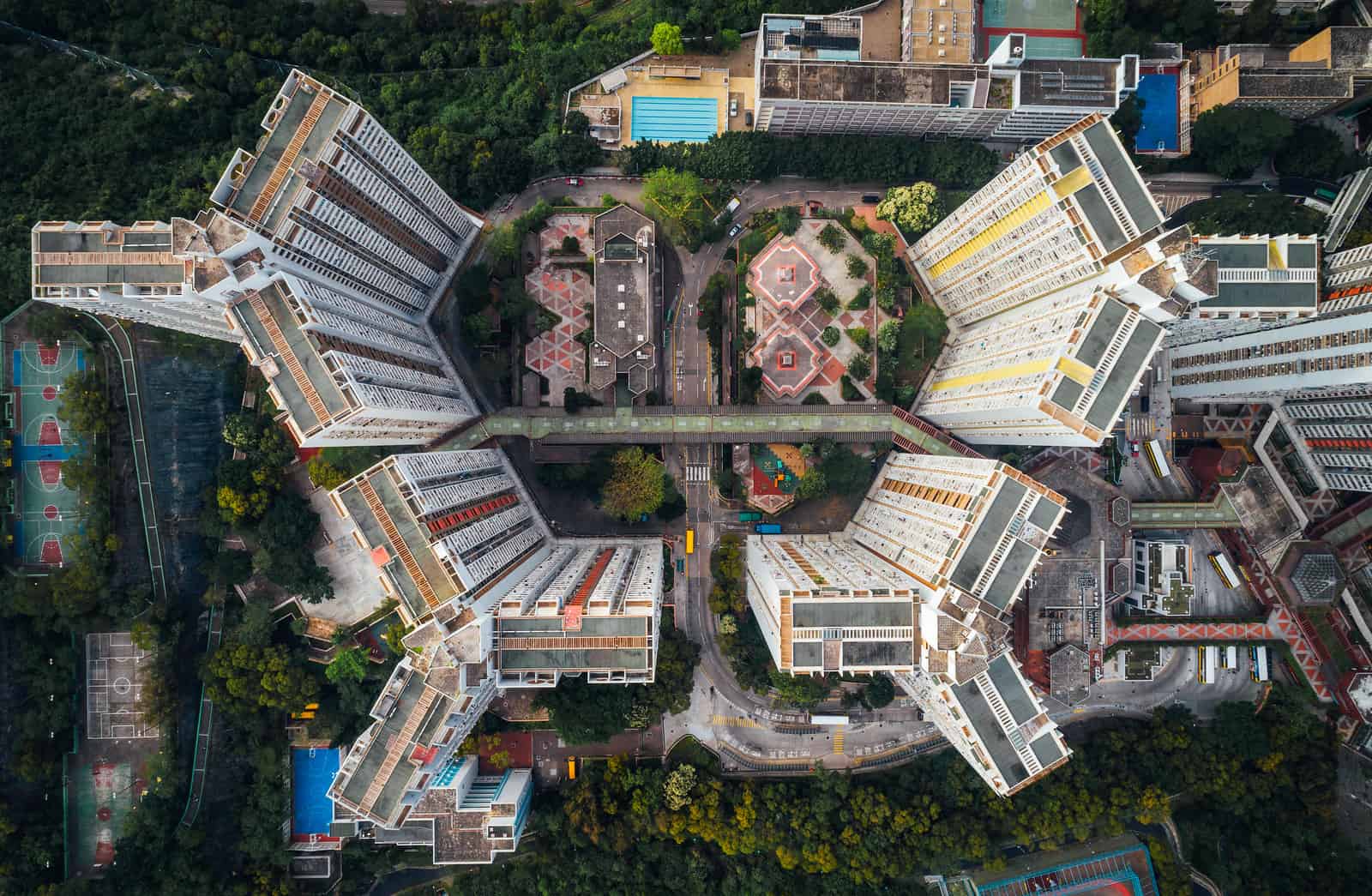 Aussi connue sous le nom de la Citadelle de Kowloon, ce quartier de Hong-Kong était le plus densément peuplé avant sa destruction programée en 1992. Aujourd’hui, Kowloon City reste une ville très densément peuplé et c’est cet aspect que Andy Yeung a voulu nous montrer. A l’aide d’un drone, il a capturé des images saisissantes de Hong-Kong pour une série qu’il a intitulé « Walled City ». En s’élevant perpendiculairement au-dessus de la ville, Andy Yeung nous fait découvrir la géométrie des gratte-ciels hong-kongais et nous plonge dans une atmosphère claustrophobe qui nous fait prendre la mesure de la densité de la population toujours très élevée aujourd’hui.