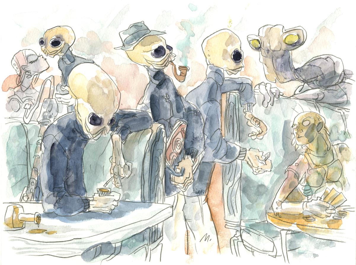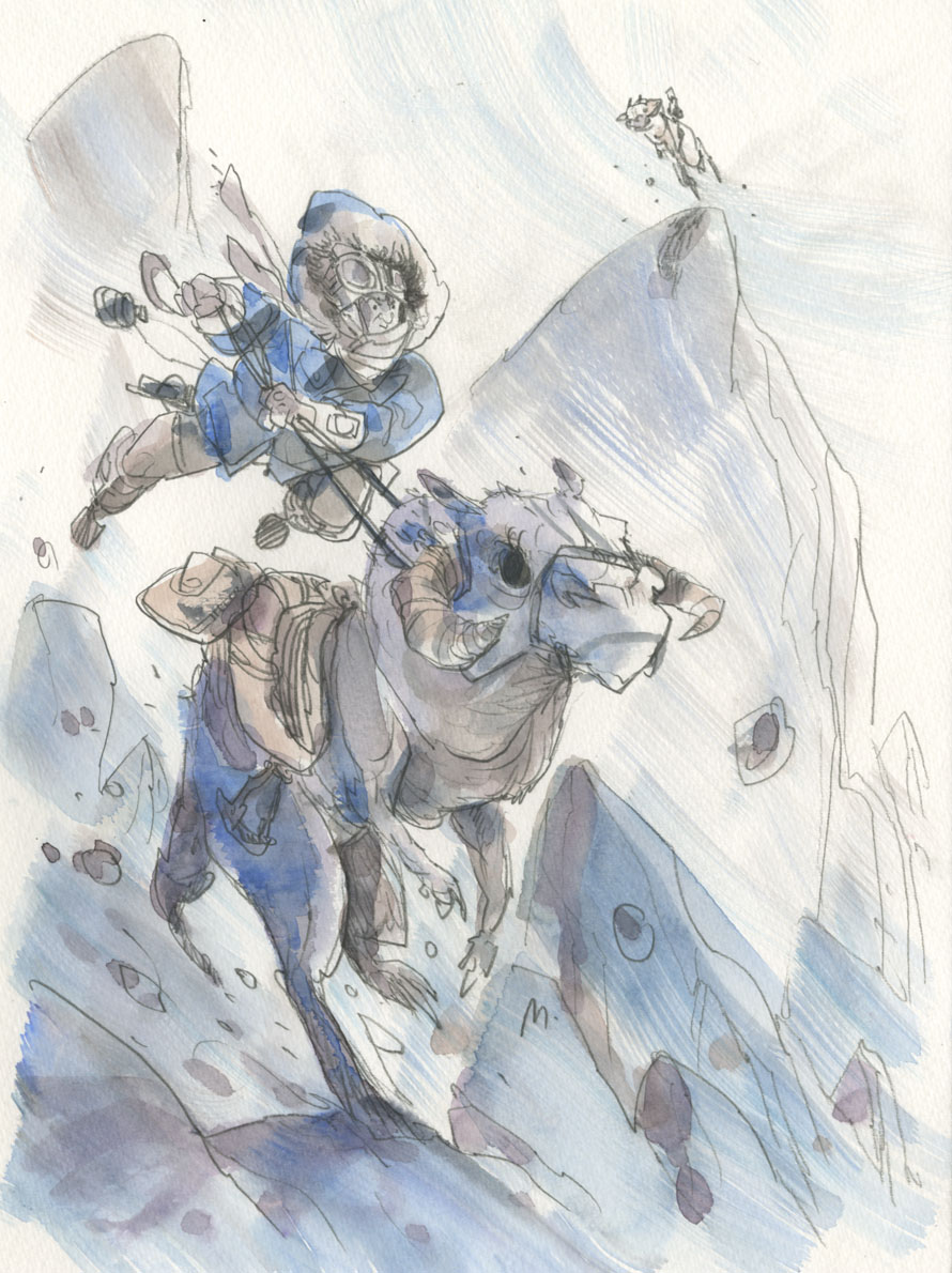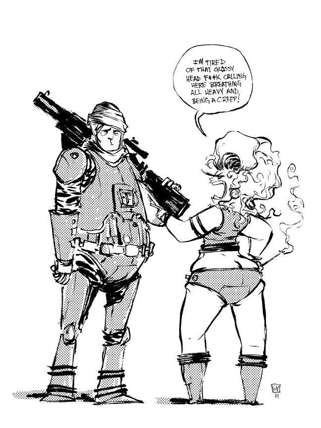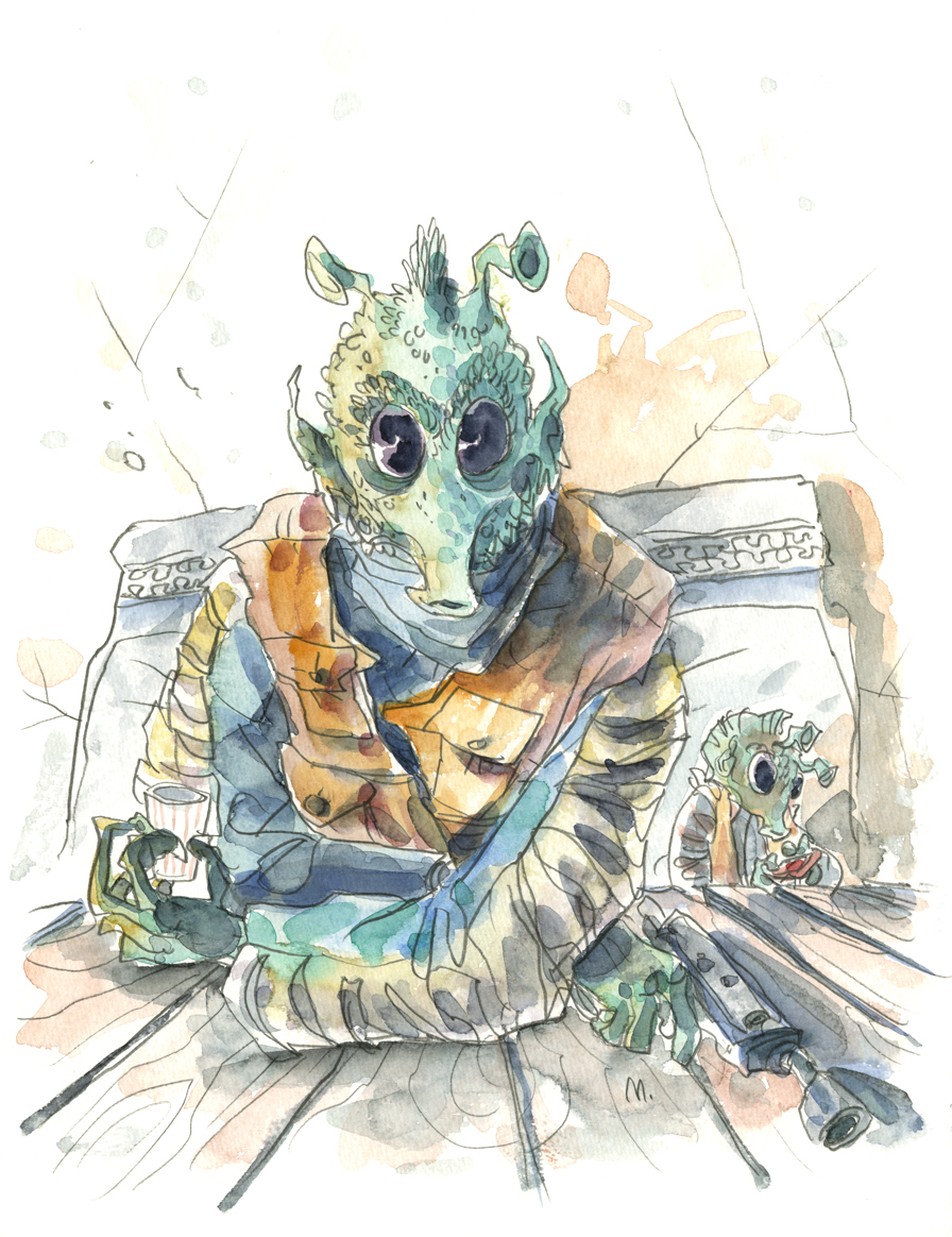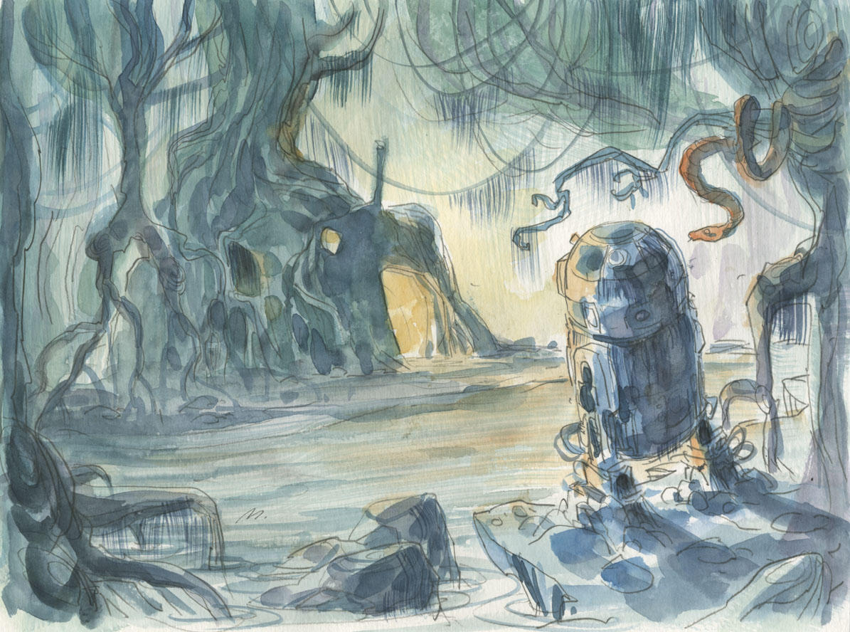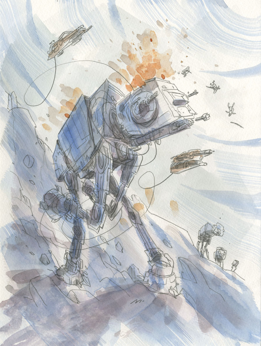 Voici une excellente série de dessins réalisés par les deux acolytes Scott Morse et Skottie Young. Une myriade d’illustrations qui nous montre leur vision de l’univers Star Wars. Des dessins qui sont principalement basés sur la dernière trilogie (épisode IV, V et VI) qui se veulent tantôt sérieux, tantôt humoristique comme ce Darth Vader en version kid qui rappellerait bien la publicité de Volksagen et son Darth Vader junior.