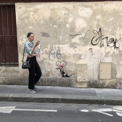 Pour la première fois de son histoire, Banksy a arpenté les rues de Paris et a marqué ces rues de son empreinte. Le contexte est bien choisi par l’artiste, il s’agit de la Fashion Week parisienne où plusieurs collaborations ont eu lieu entre de grandes marques de la mode et des grands noms de l’art.