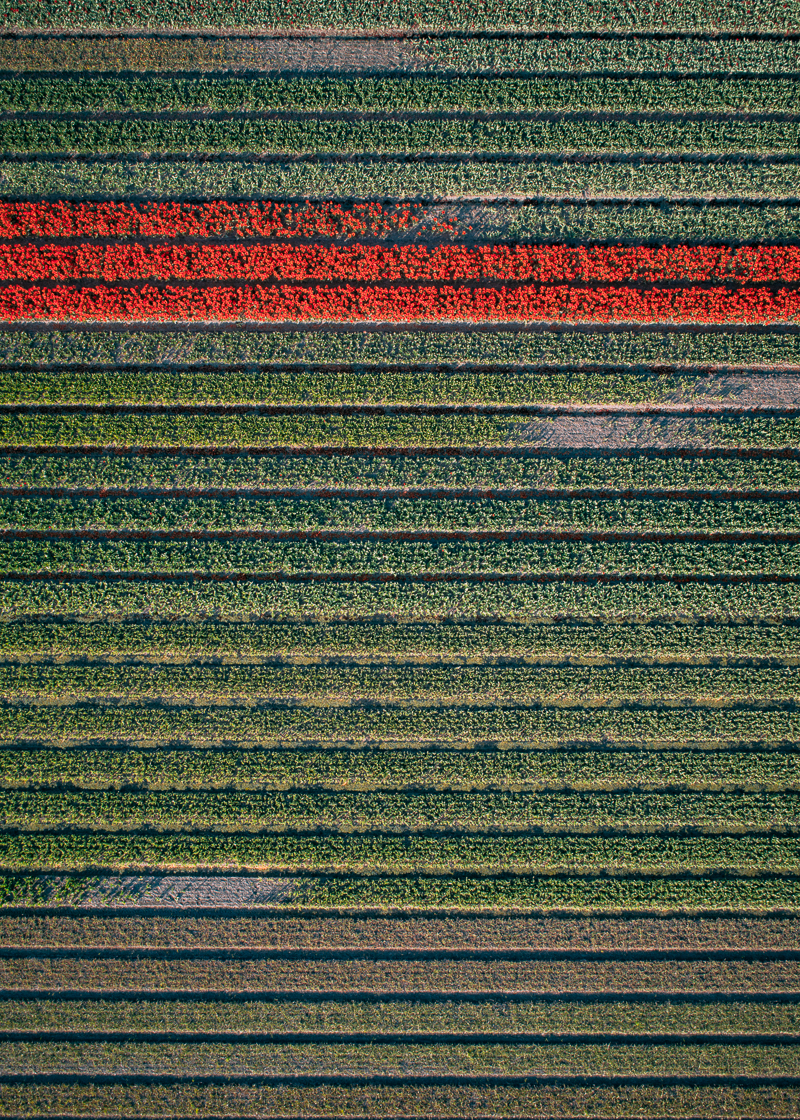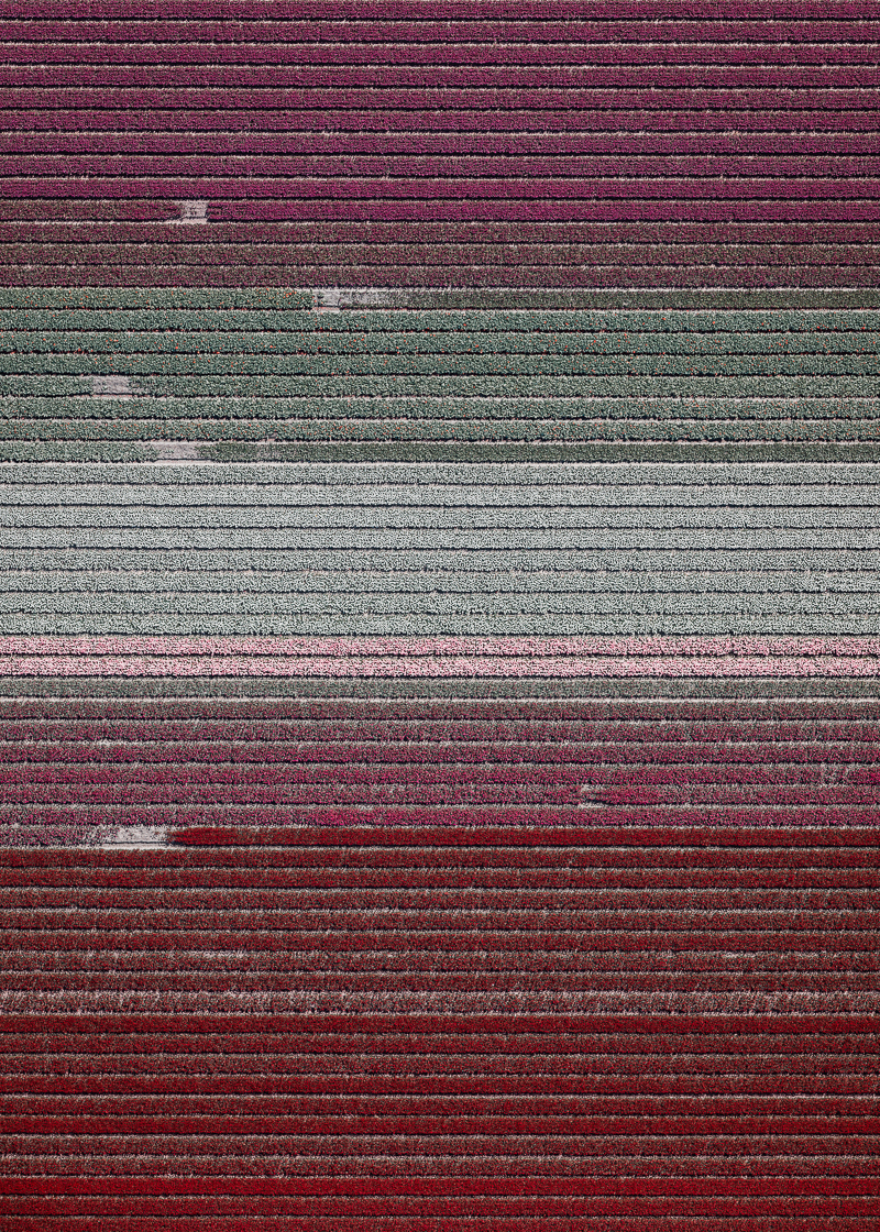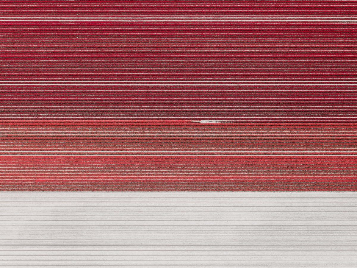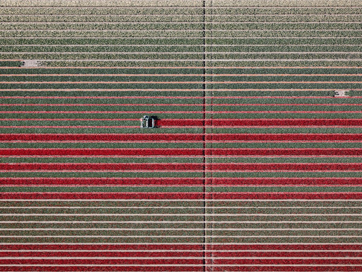 Photographe et designer allemand, Tom Hegen est avant tout spécialisé dans la photographie aérienne. Ses prises de vue mettent en évidence les transformations que l’homme a apporté aux paysages naturels. Au travers de ses photographies de la série « Aerial Tulips », le photographe montre la beauté et la dureté de ces cultures importantes.
