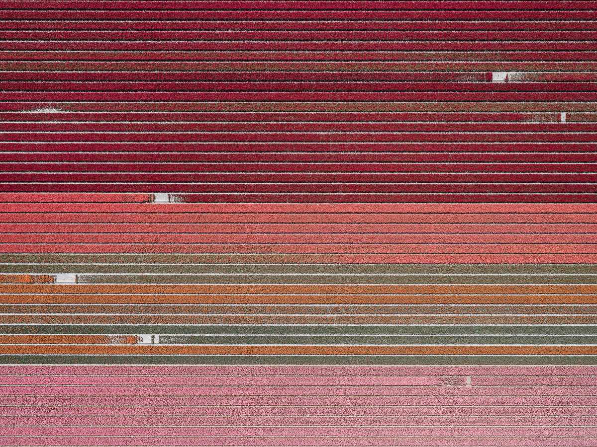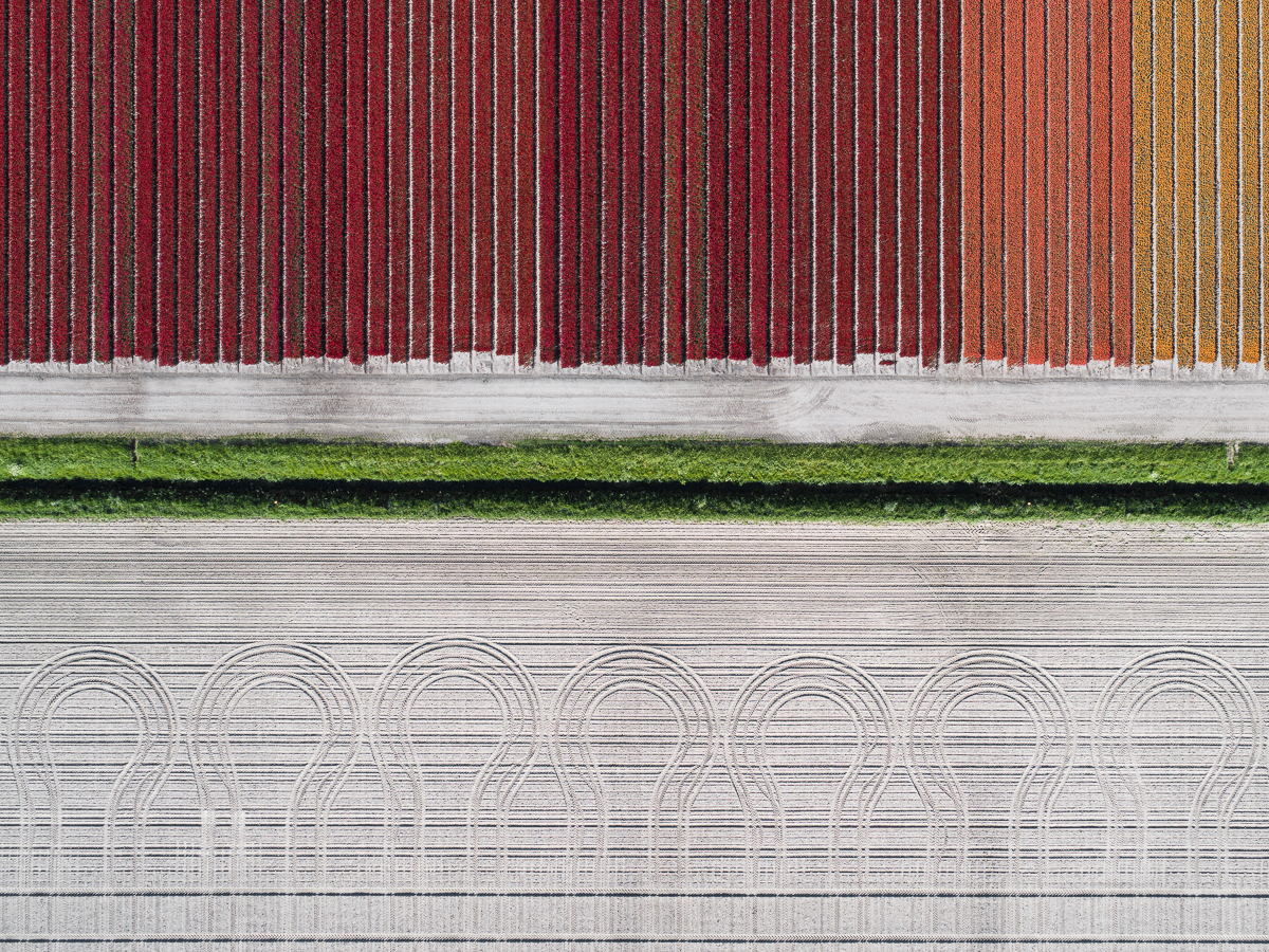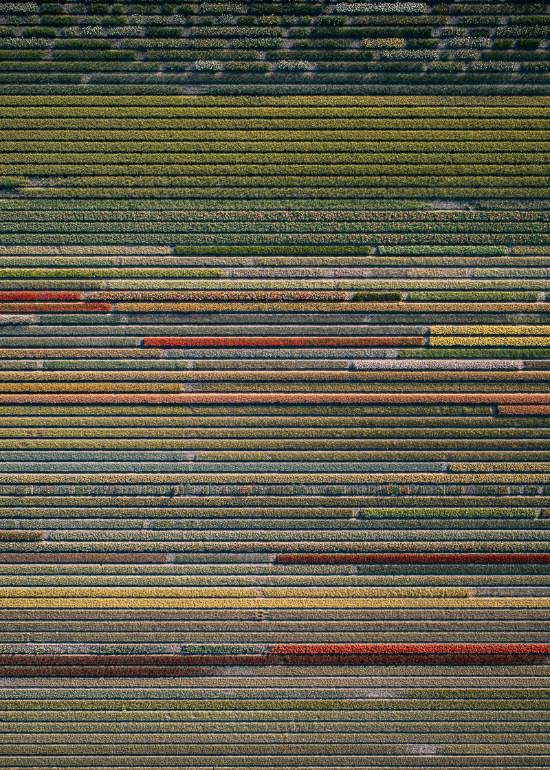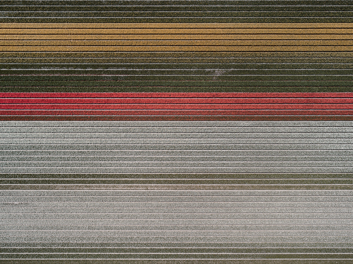 Photographe et designer allemand, Tom Hegen est avant tout spécialisé dans la photographie aérienne. Ses prises de vue mettent en évidence les transformations que l’homme a apporté aux paysages naturels. Au travers de ses photographies de la série « Aerial Tulips », le photographe montre la beauté et la dureté de ces cultures importantes.