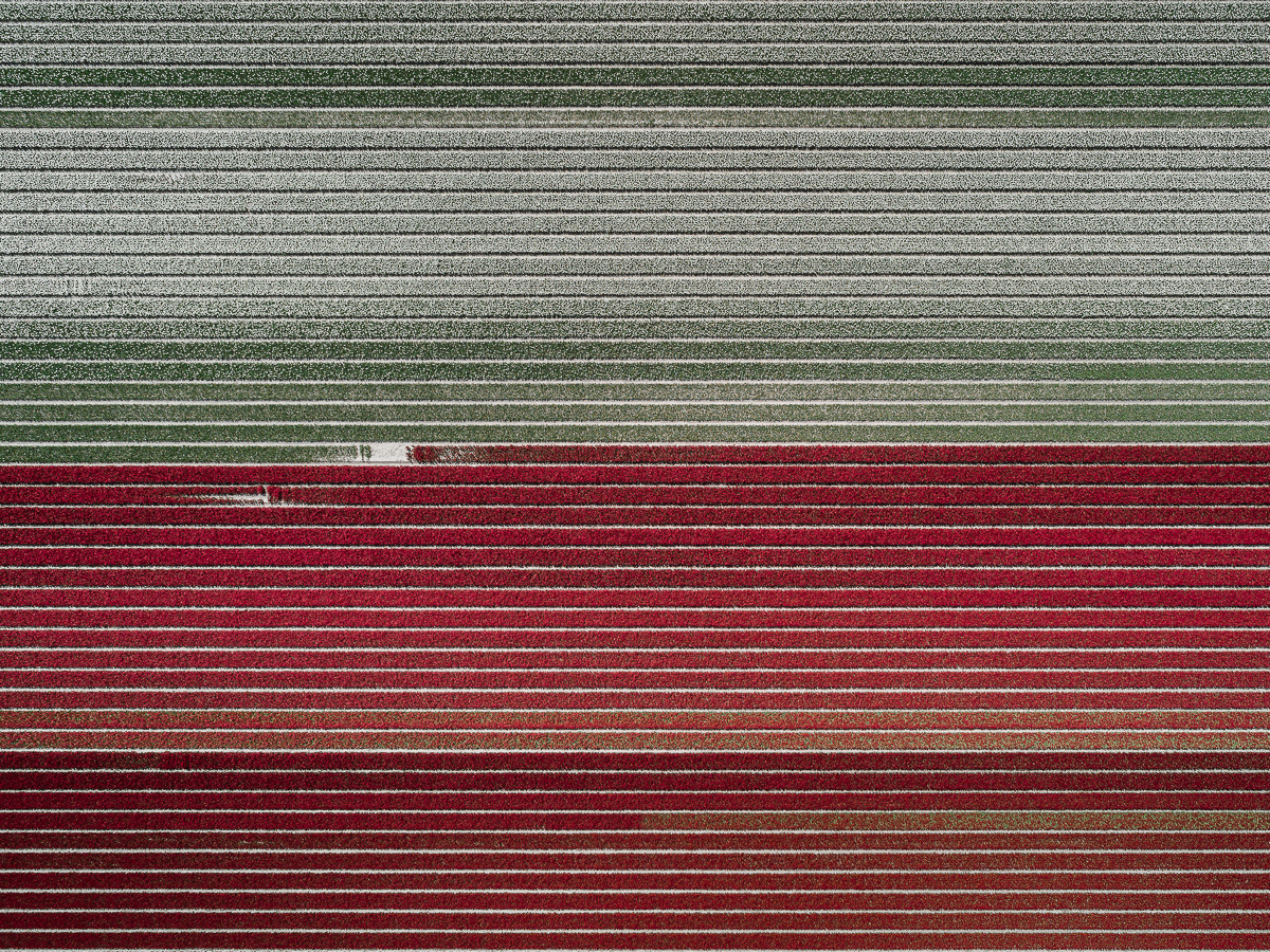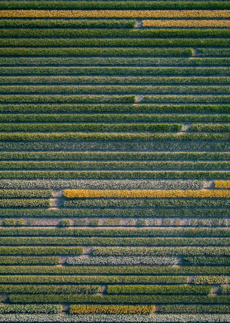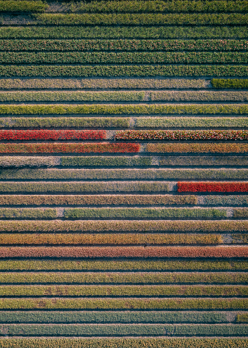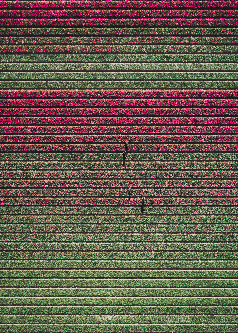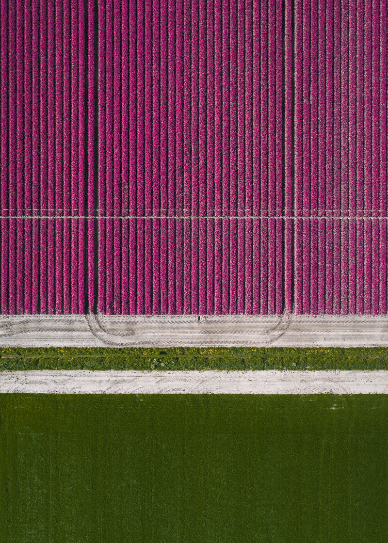 Photographe et designer allemand, Tom Hegen est avant tout spécialisé dans la photographie aérienne. Ses prises de vue mettent en évidence les transformations que l’homme a apporté aux paysages naturels. Au travers de ses photographies de la série « Aerial Tulips », le photographe montre la beauté et la dureté de ces cultures importantes.