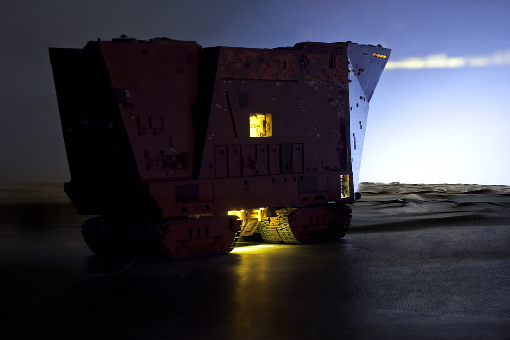 Ca faisait un petit moment que ça trainait dans ma liste des choses à bloguer, ça serait chose faite. Voici le Sandcrawler ou char des sables, véhicules qu’utilisent les Jawas dans l’épisode IV de Star Wars qui se veut imposant. Ici, il a été réalisé entièrement en LEGO par un certain Marshal Banana. Un travail vraiment impressionnant, surtout quand on voit la taille imposante et le réalisme de cette maquette.