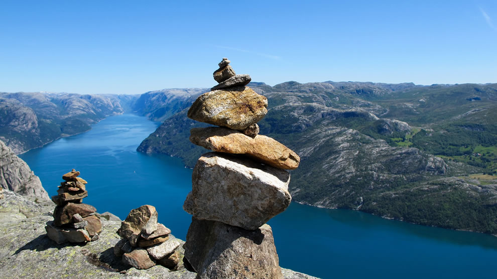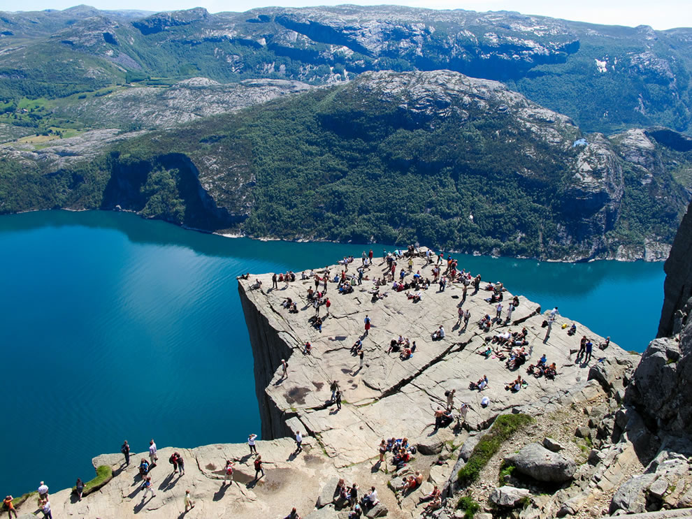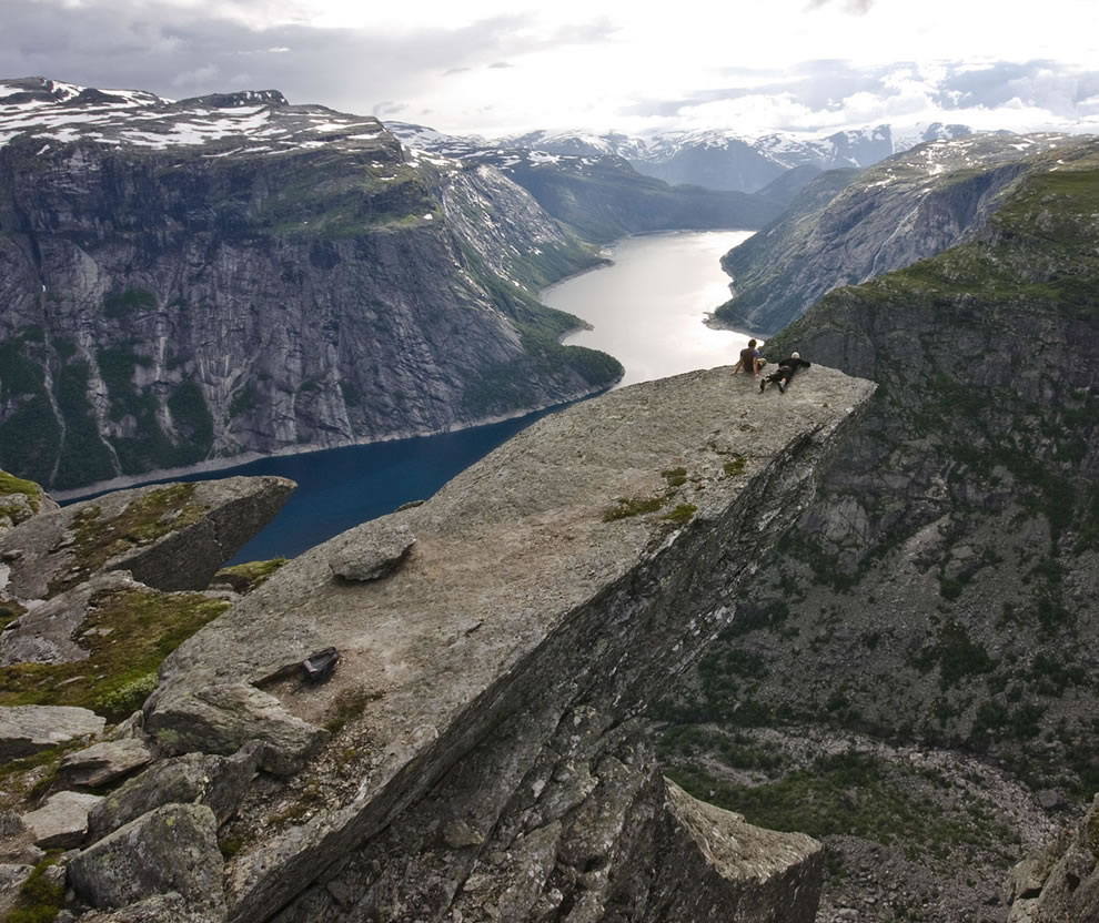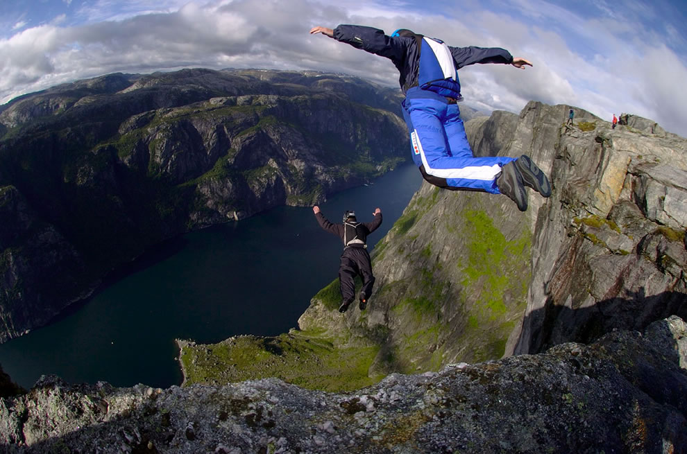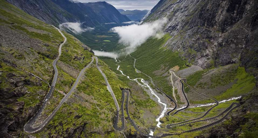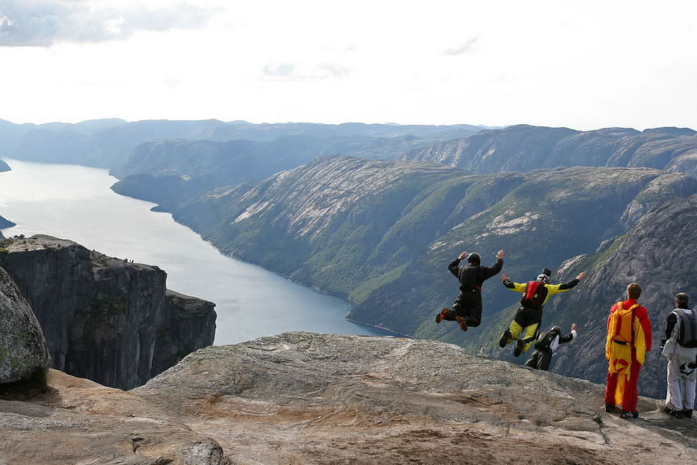 Voici quelques somptueuses photographies des paysages norvégiens. Un regard sur des chemins en lacets qui mènent à des falaises. Ces paysages attirent toutes sortes de gens, notamment les randonneurs et alpinistes mais aussi les photographes. Parmi ces personnes, il y a notamment les bases-jumpers pris en photos, dont voici le résultat. Déconseillé si tu es susceptible au vertige.