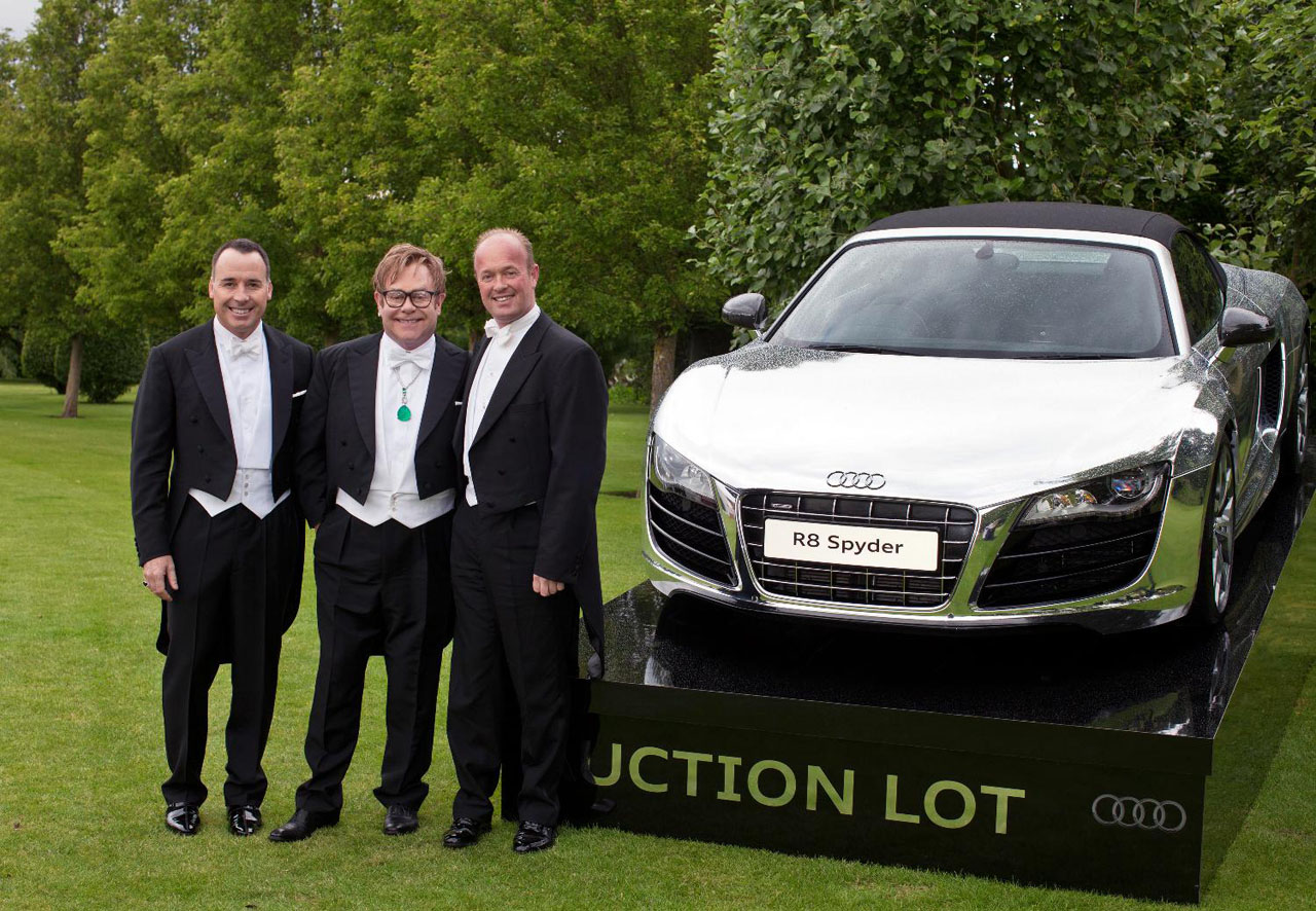 Livrée full-chrome pour cette Audi R8 Spyder, une édition spéciale offerte en deux exemplaires pour être vendues aux enchère aux profits de la Elton John AIDS Foundation. Deux exemplaires vendus au prix total de 620.000 £ à cette occasion, par Sir Elton John en personne.