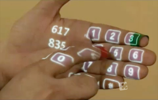 Pour projeter des images, le projecteur LED se connecte à Internet via un téléphone mobile, récupérant ainsi les données en fonction du besoin de l’utilisateur. Cette même interface permet par exemple d’afficher l’heure sur son bras ou encore de saisir un numéro de téléphone avec un clavier projeté sur sa main ou l’emplacement que l’on désire.