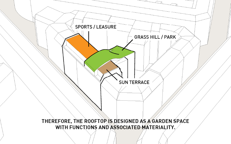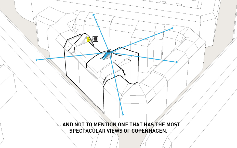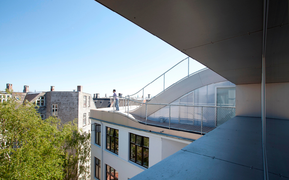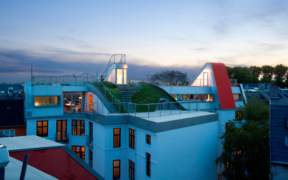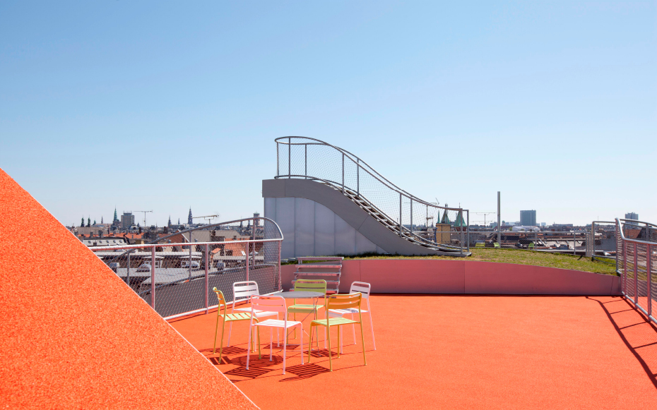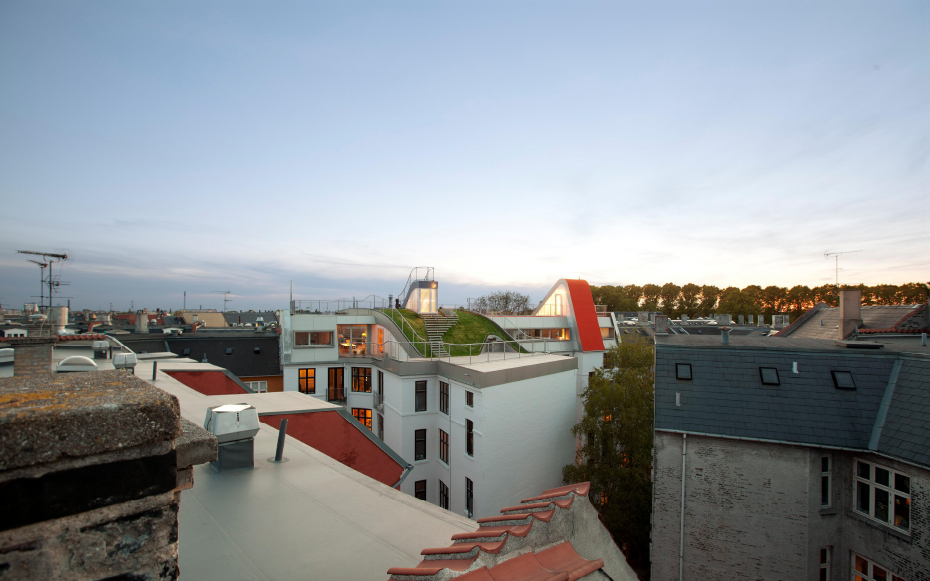 Brillante idée élaborée par le cabinet d’architectes Julien de Smedt (JDS) Architects. Situé dans le district Elmegade à Copenhague, voici un jardin situé au sommet d’un immeuble. Une idée très agréable pour les propriétaires de l’immeuble qui peuvent profiter pleinement de ce jardin privé. Plusieurs aspects ludiques, ce jardin comporte une aire de jeux et son pont suspendu, une petite butte et sa verdure naturelle et surtout, une vue imprennable sur la ville de Copenhague.