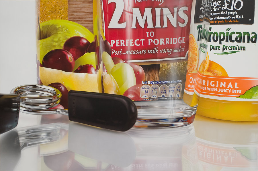 Découverte du peintre Tom Martin et de ses toiles hyperréalistes, à l’instar d’Omar Ortiz. Des toiles qui pourraient nous sembler tirées tous droits de photographies commerciales pour aliments. Et pourtant, ce n’est pas du tout le cas, ce jeune anglais d’à peine 25 ans s’est découvert une passion pour peindre tous les objets de la vie quotidienne et principalement, les aliments et leur emballage.