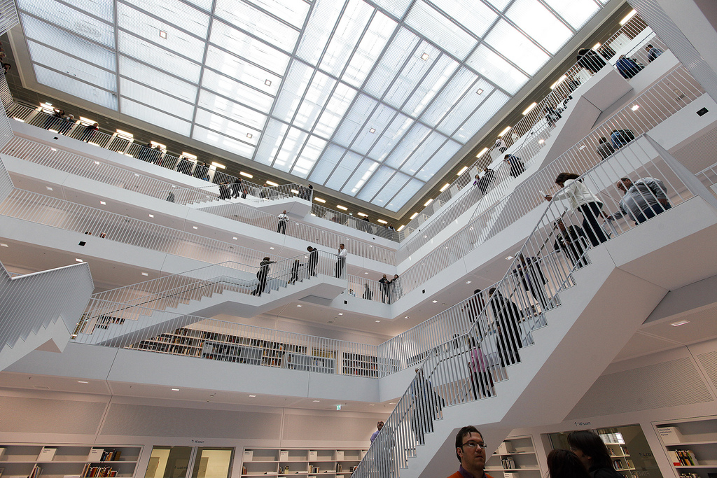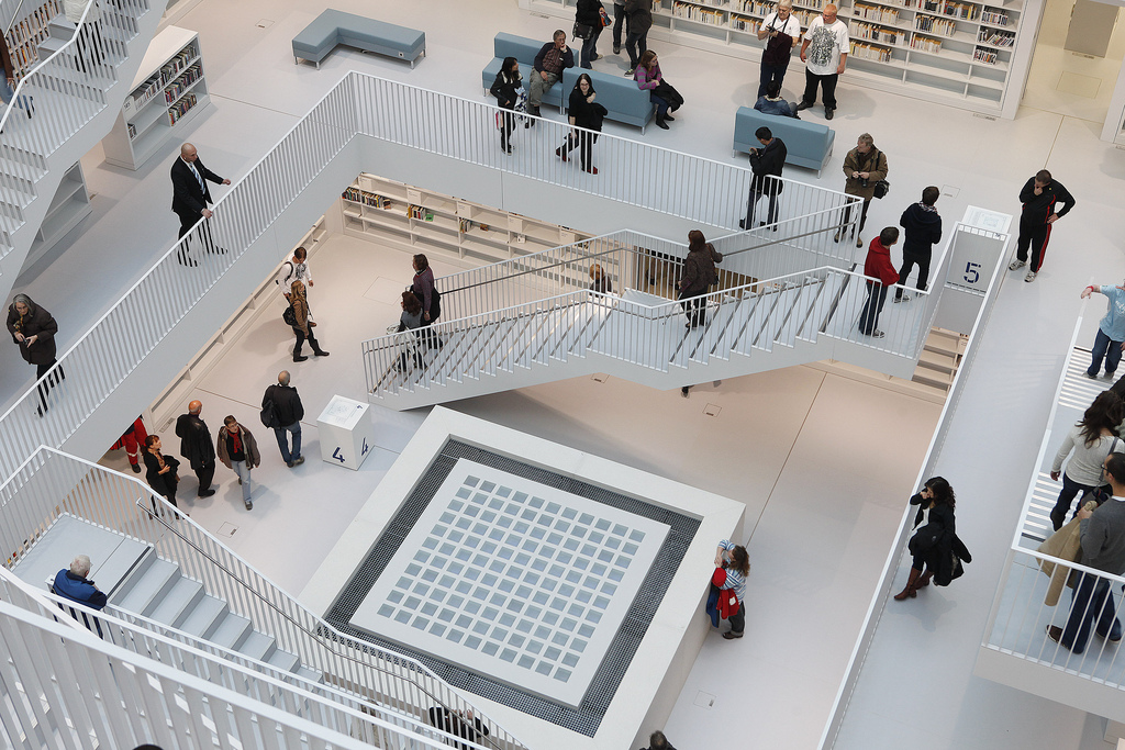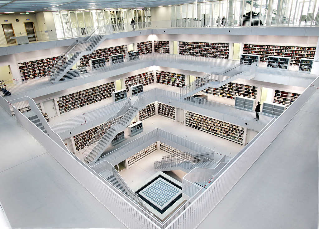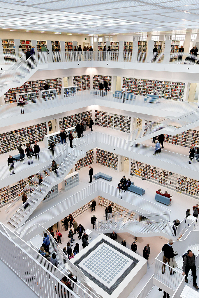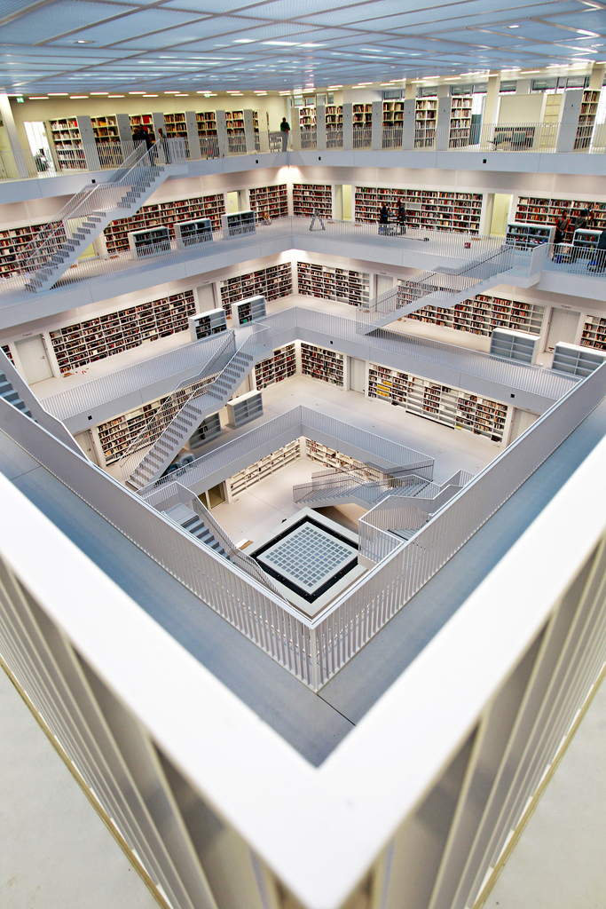 La nouvelle bibliothèque municipale de la ville de Stuttgart en Allemagne a ouvert officiellement ses portes ce 24 octobre 2011. L’occasion de découvrir une merveille architecturale moderne réalisée par Yi Architects. Un style très épuré, tout de blanc vêtu où règne pourtant une harmonie de couleurs grâce aux livres et aux visiteurs. Un intérieur lumineux sans éclairage direct grâce notamment au blanc, mais également à cet atrium centrale tout en hauteur sur les cinq étages que composent cette bibliothèque.